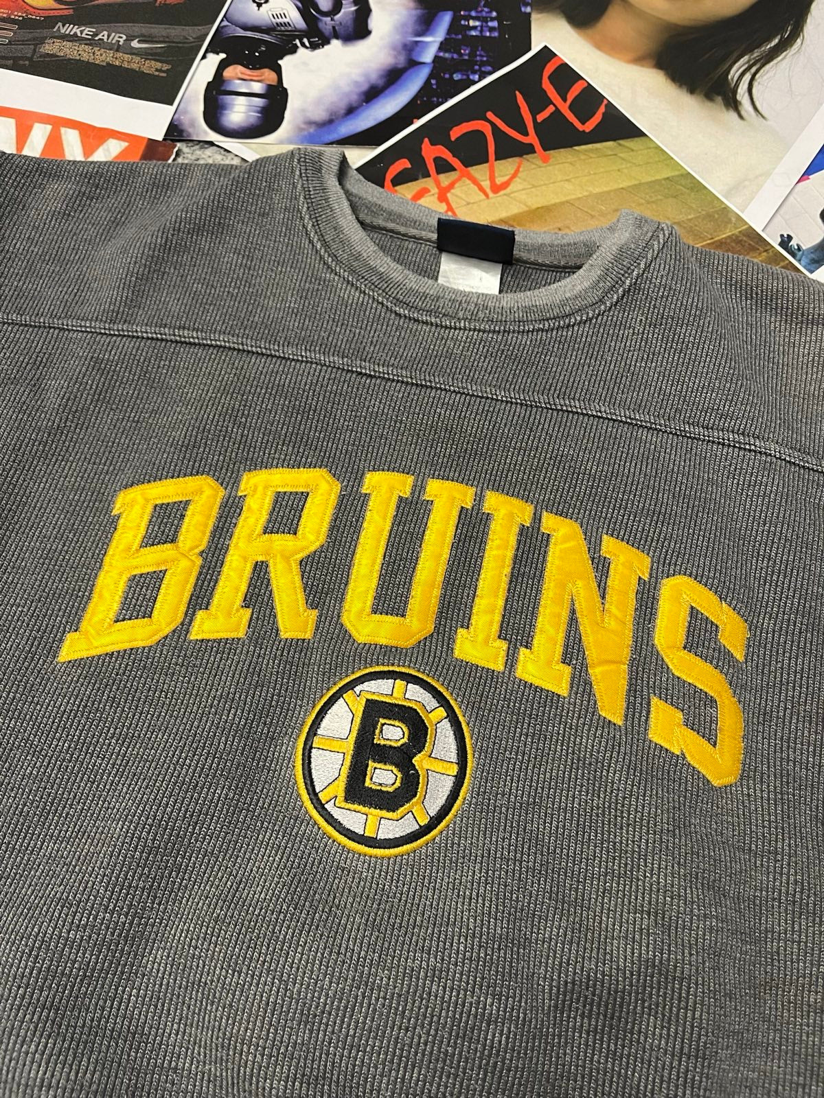(M) Pro Player svetrový crewneck šedý se žlutým nápisem BRUINS