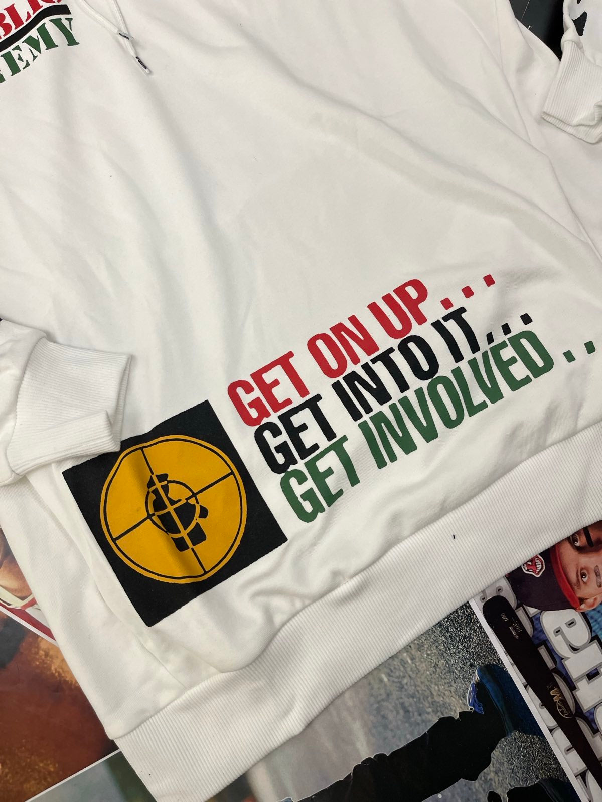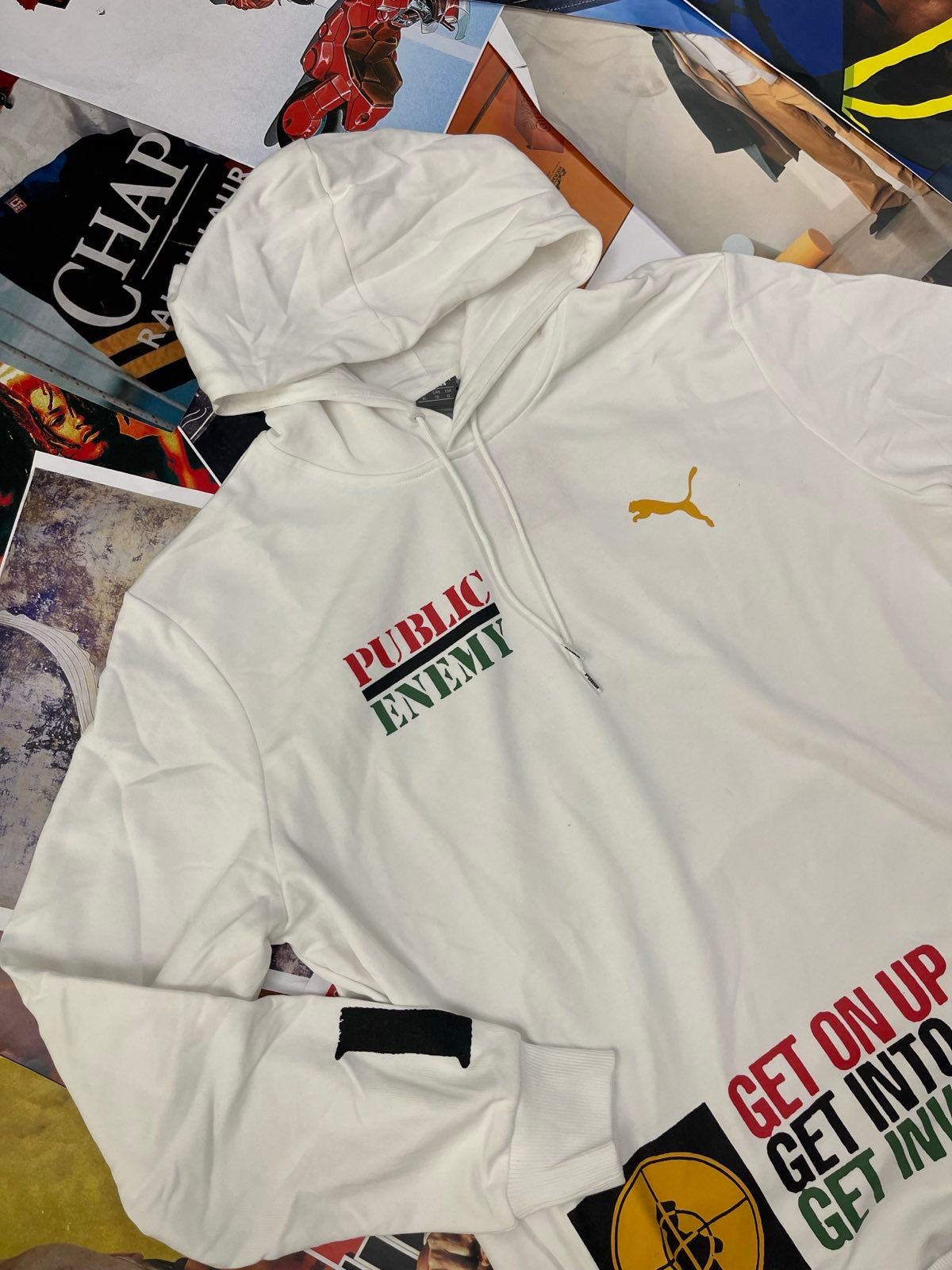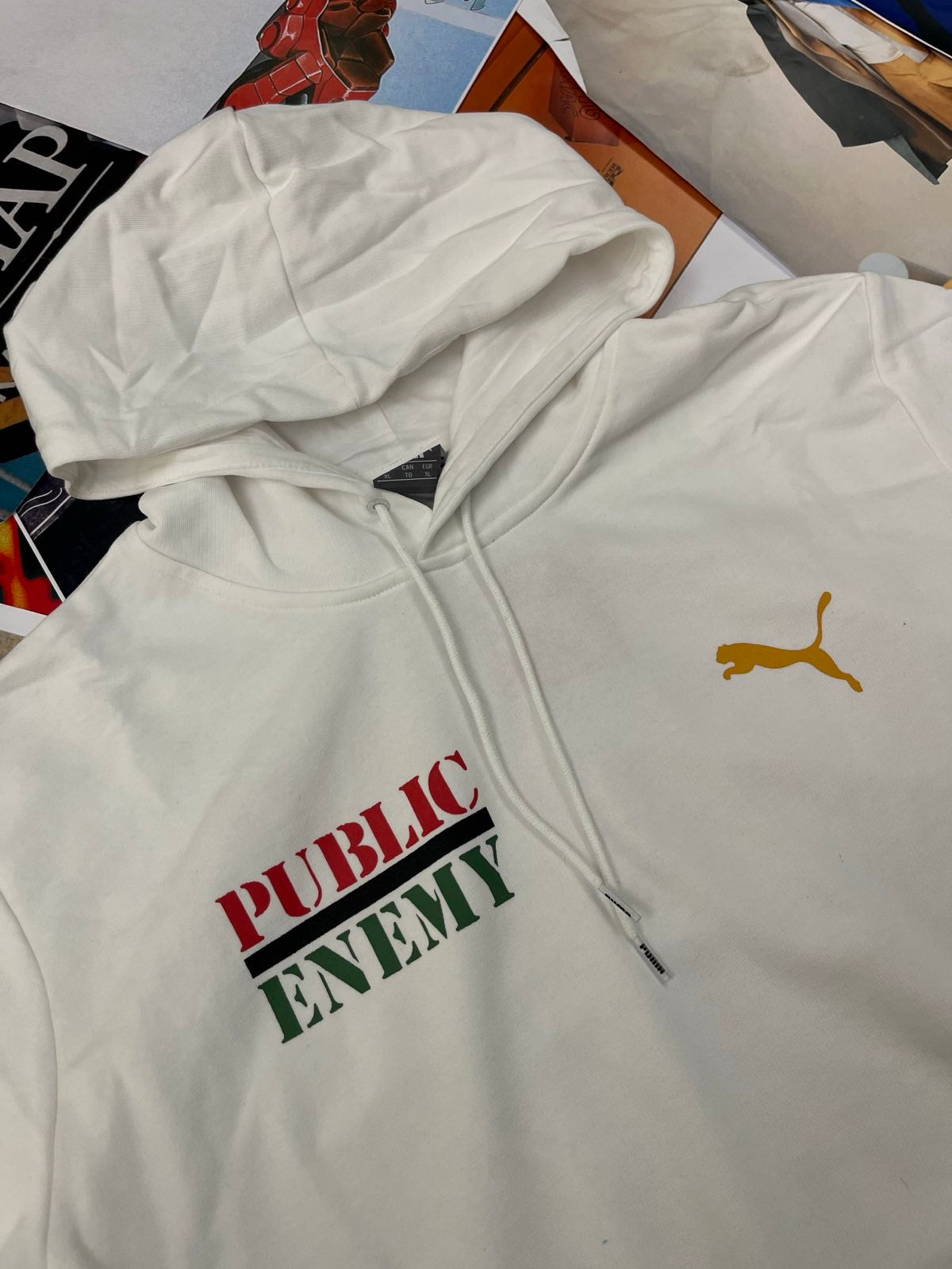 Puma x Public Enemy MIKINA bílá s kapucí, zeleno-červené nápisy
