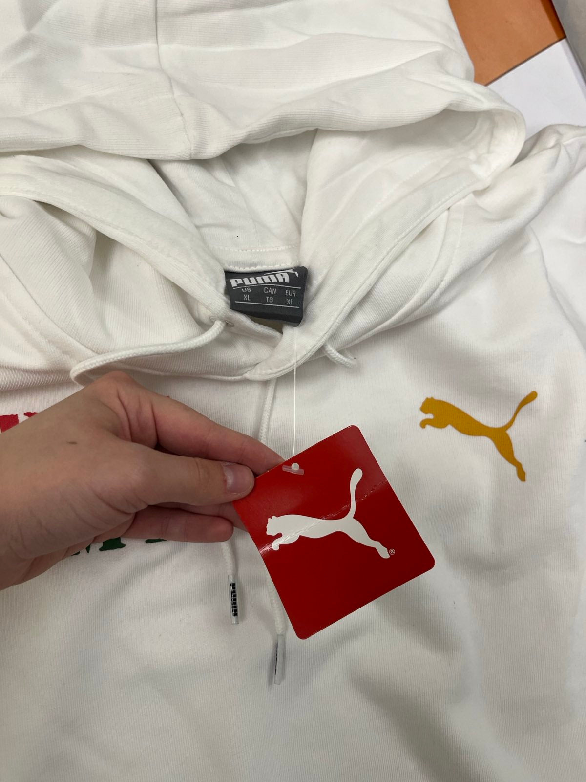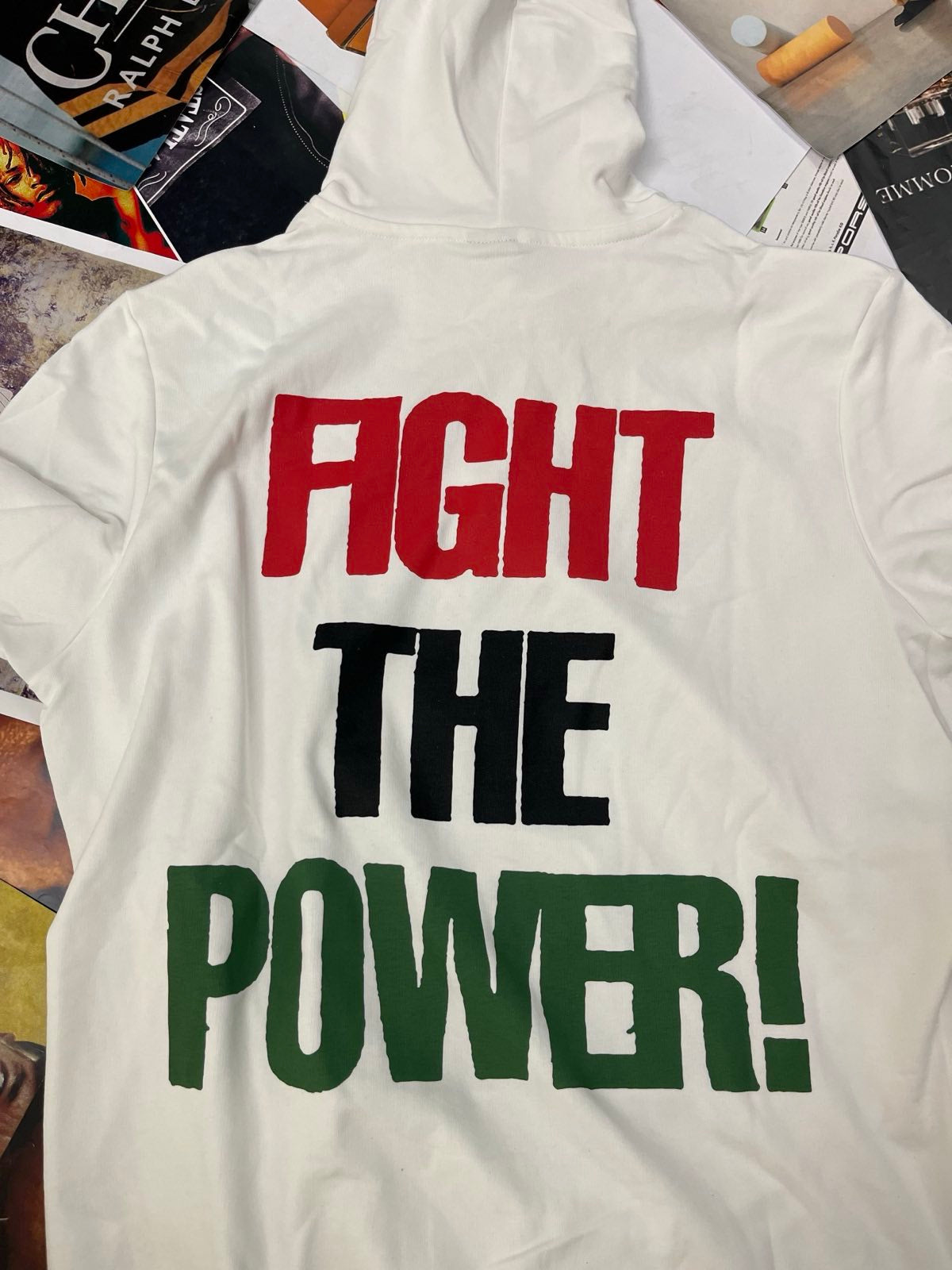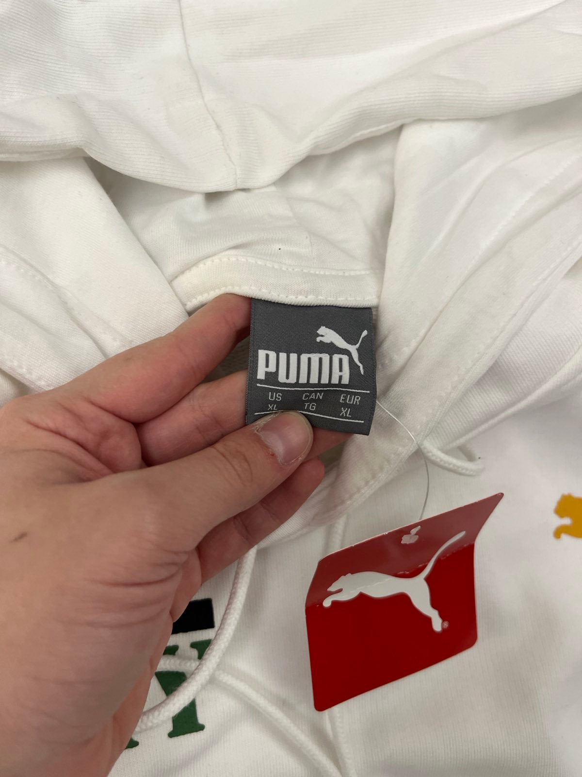Puma x Public Enemy MIKINA bílá s kapucí, zeleno-červené nápisy