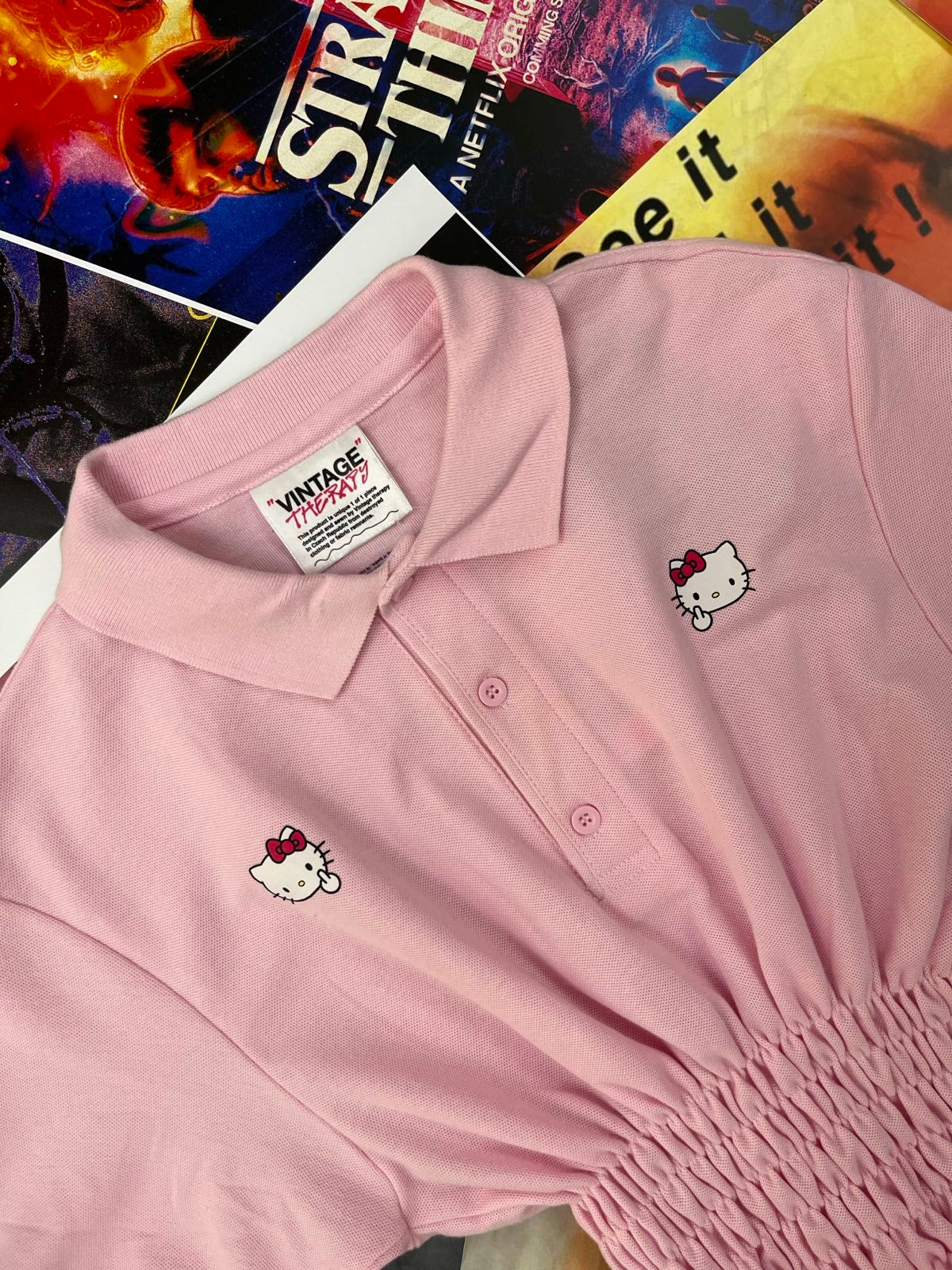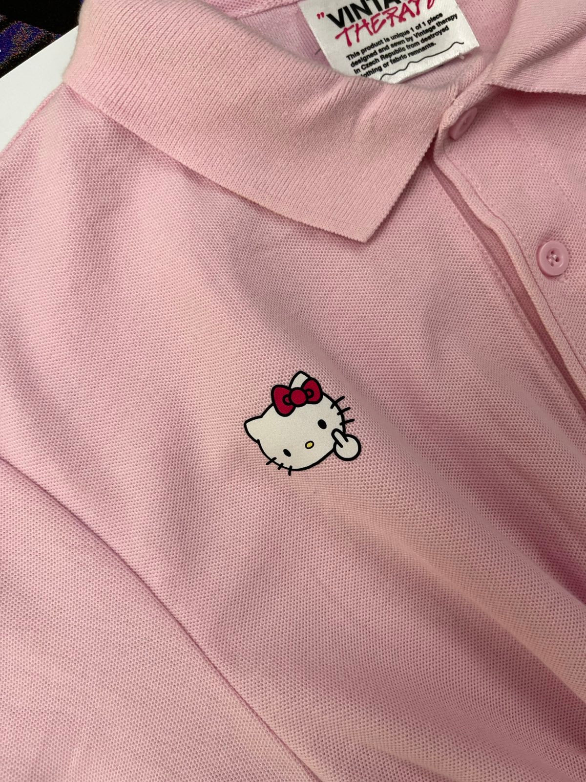 (S) Reworked polo triko růžové se žabičkováním a Hello Kitty