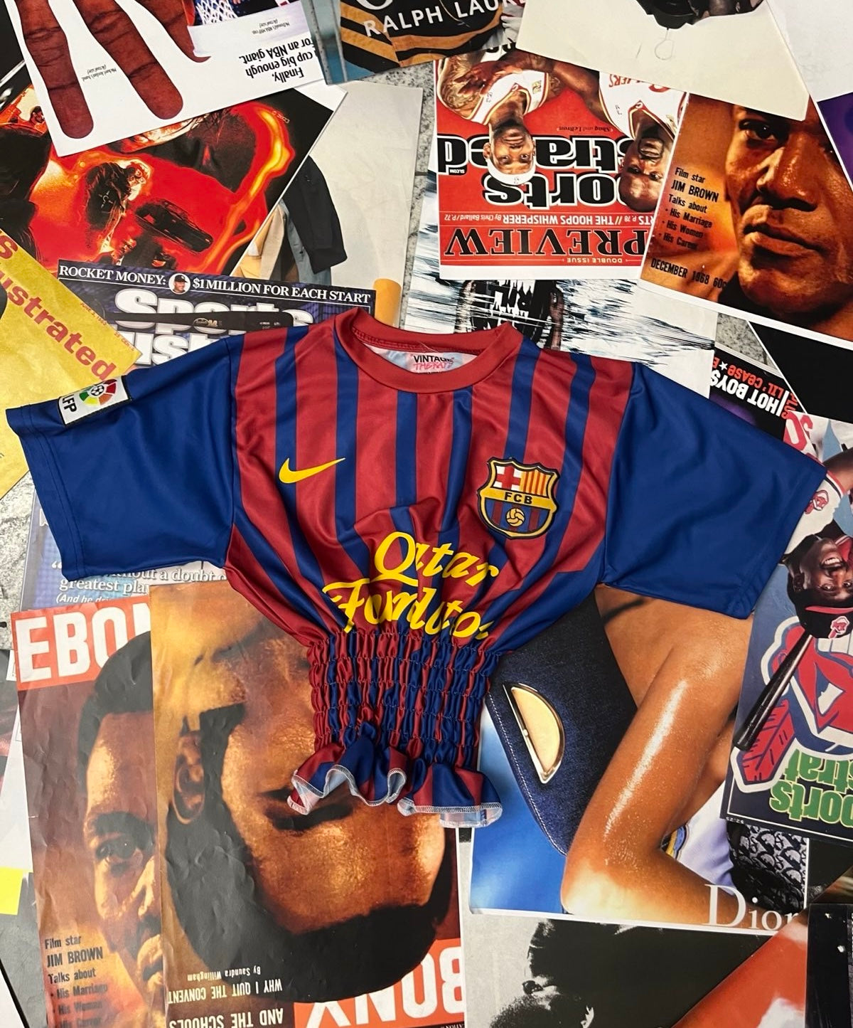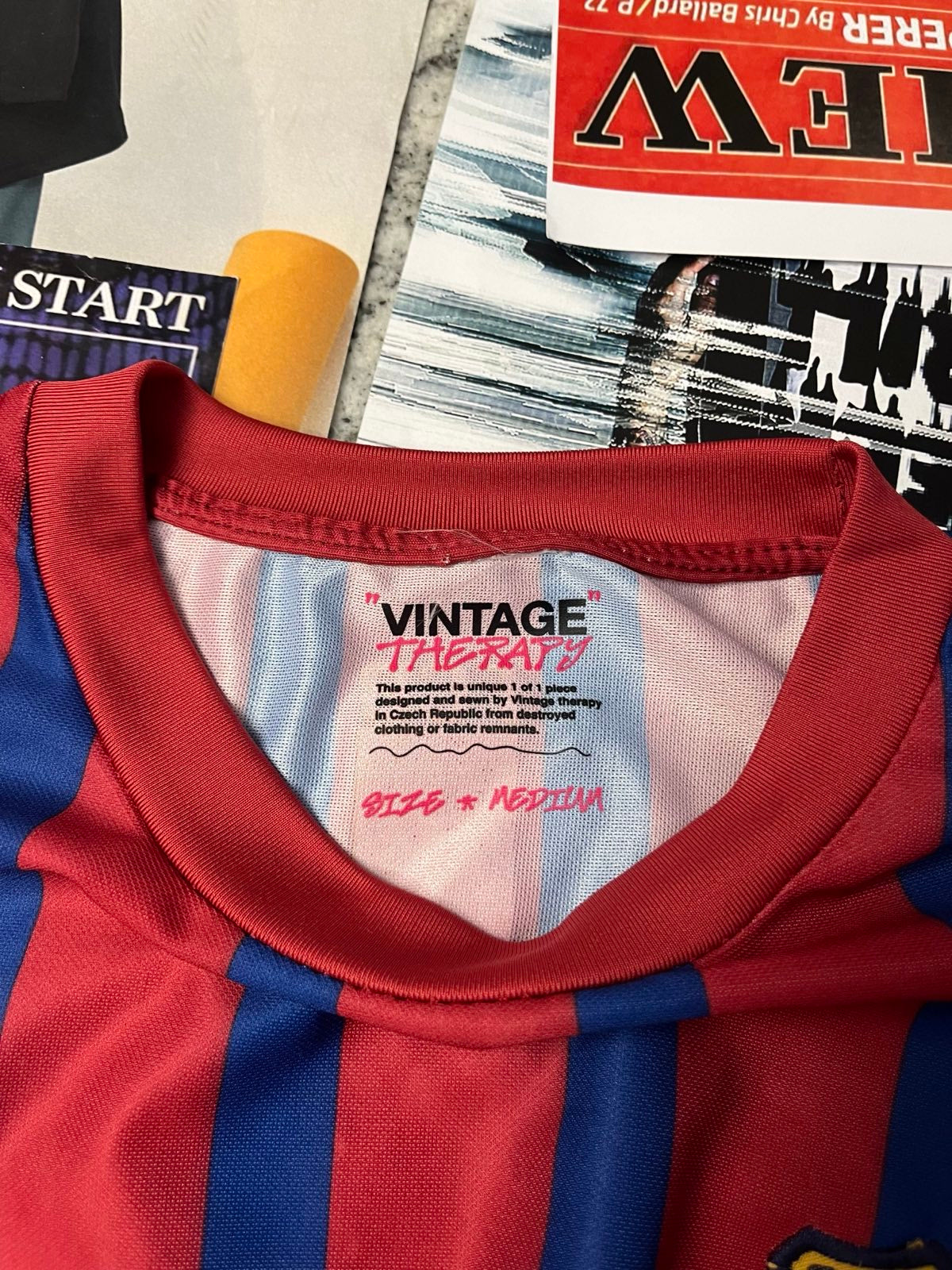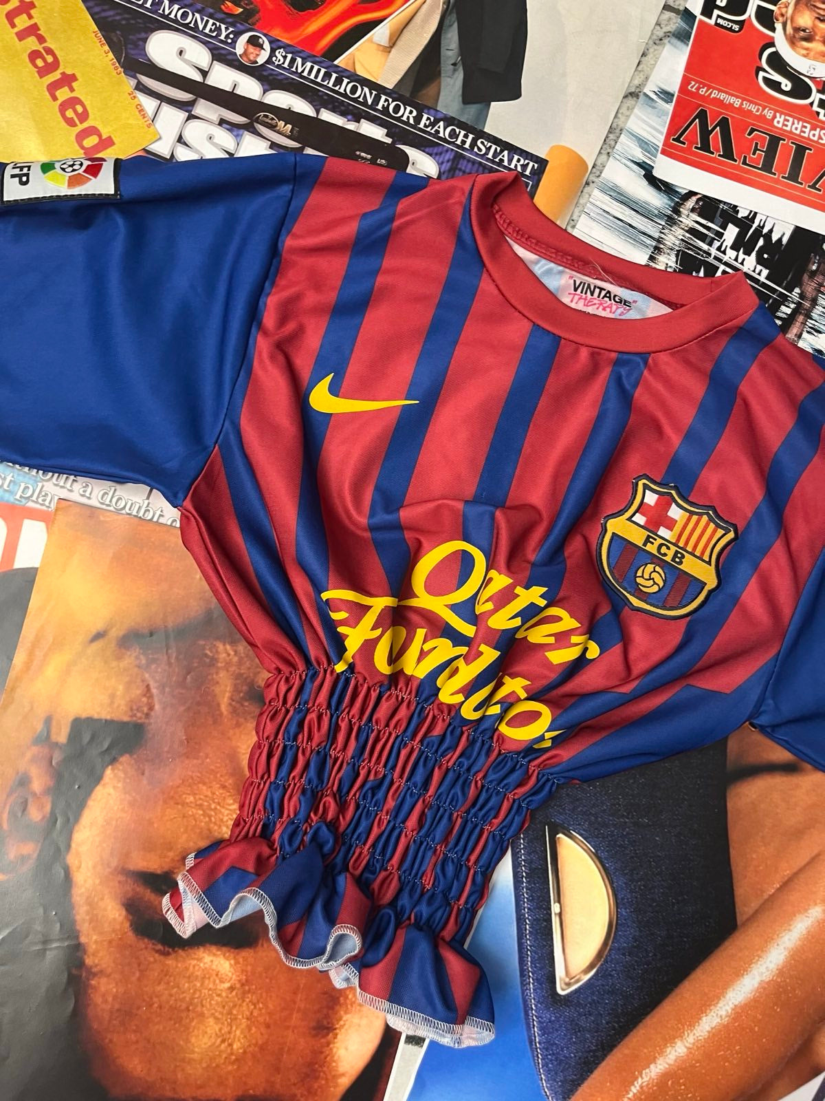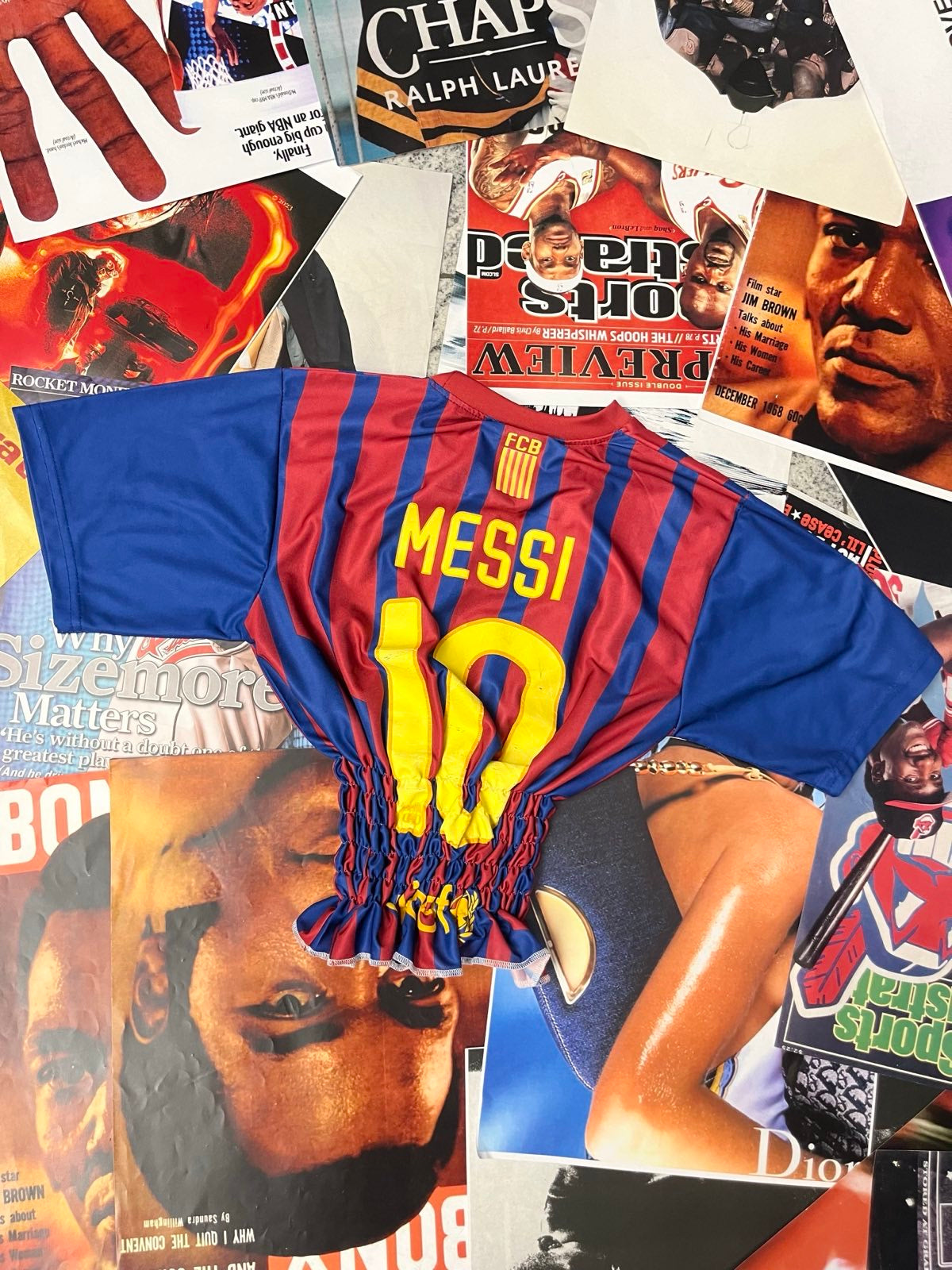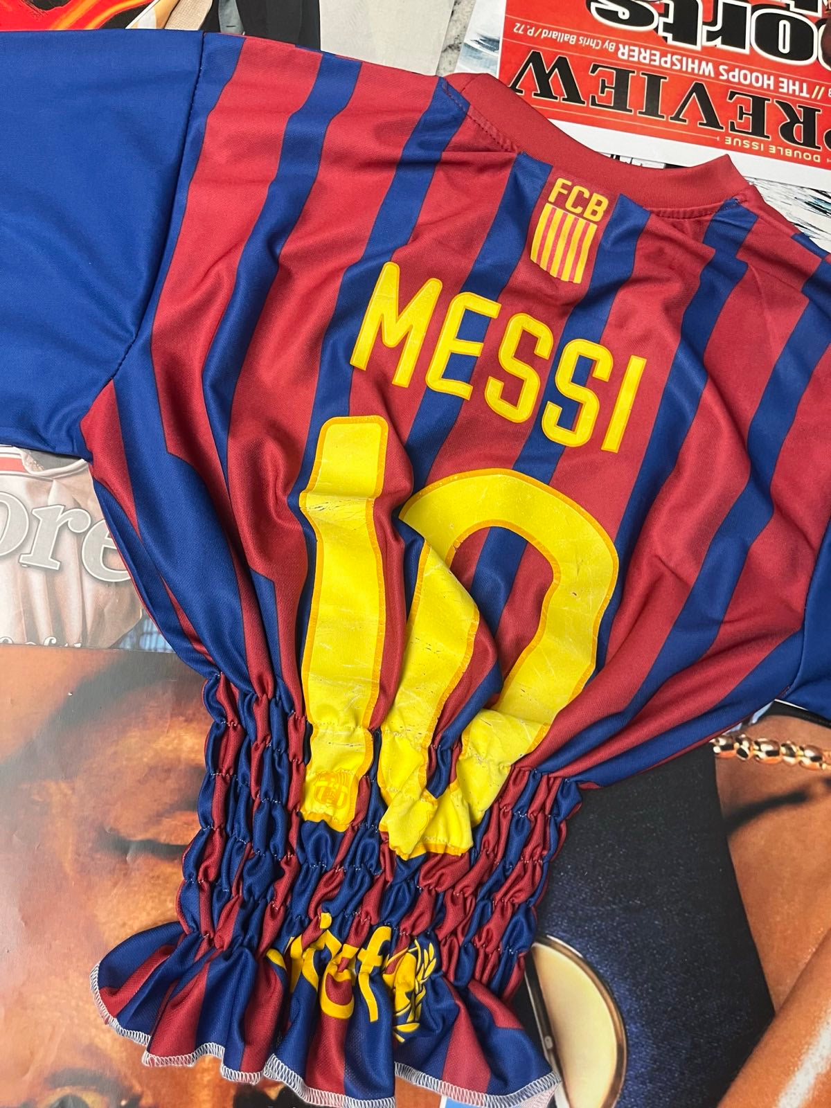 Reworked TOP s žabičkováním fotbalový dres červeno-modrý pruhovaný FCB, nápis Messi na zádech M