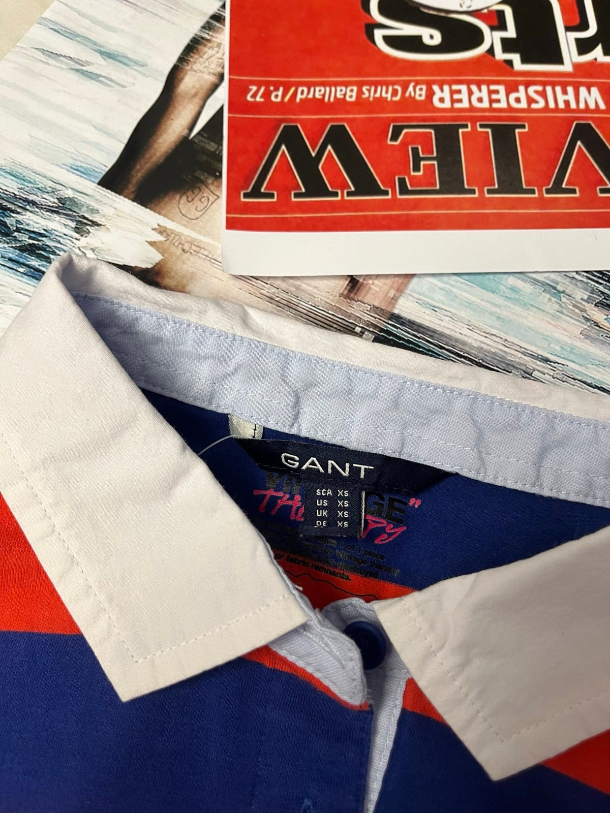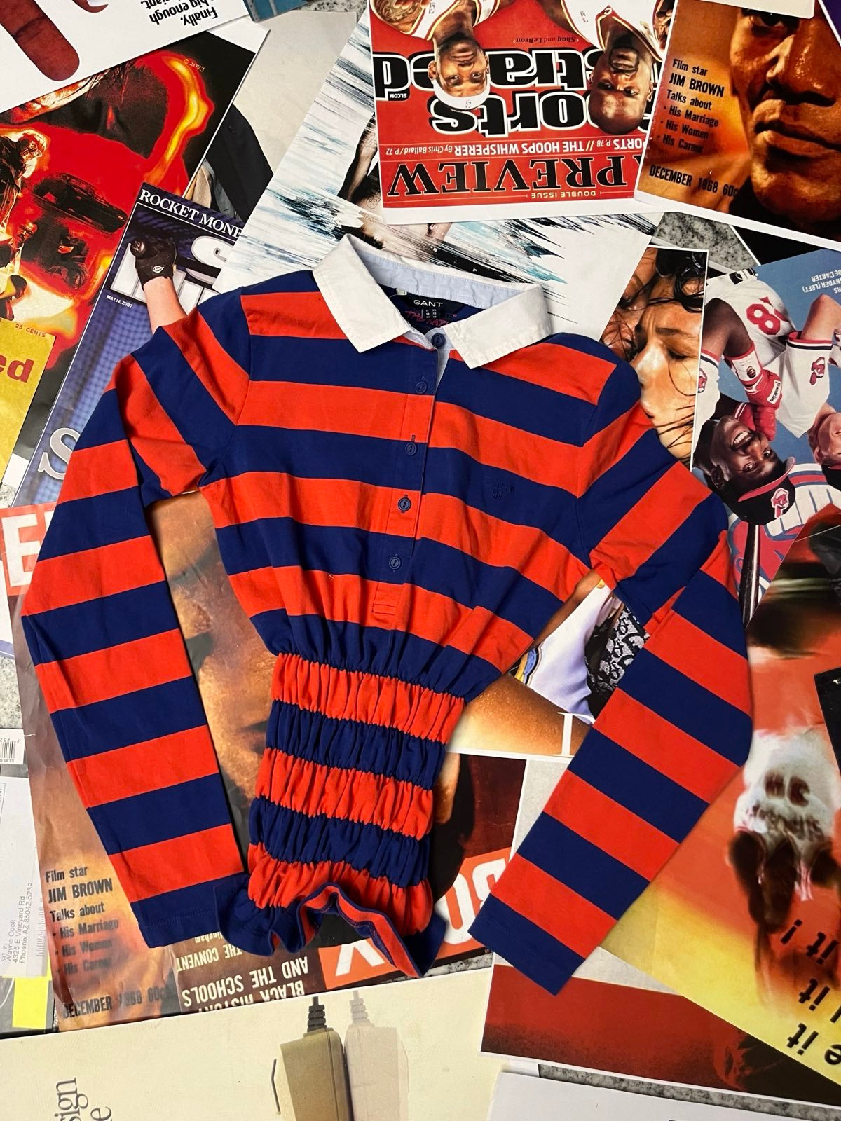 Reworked TOP s žabičkováním Gant s dlouhým rukávem červeno-modrý pruhovaný XS