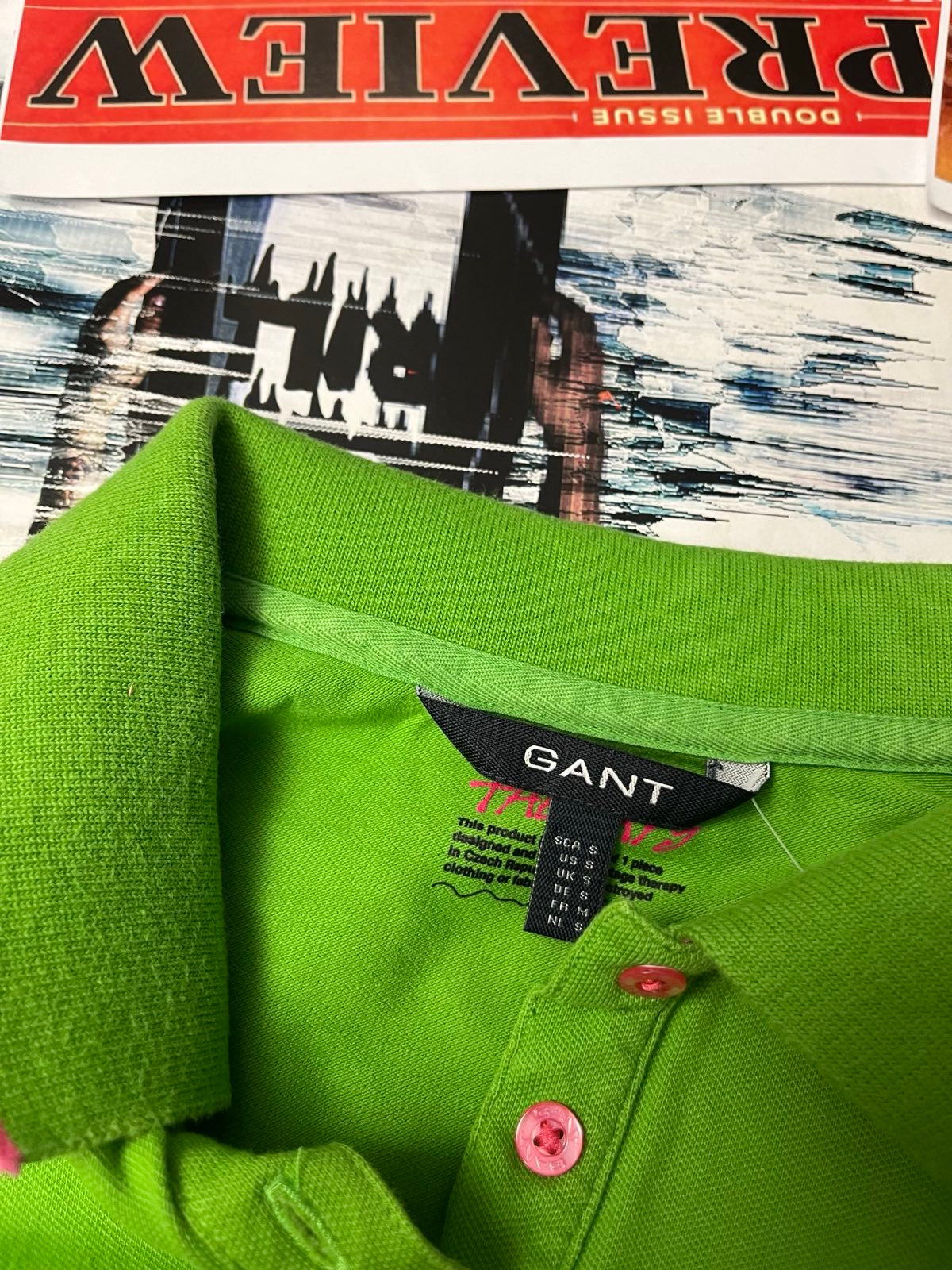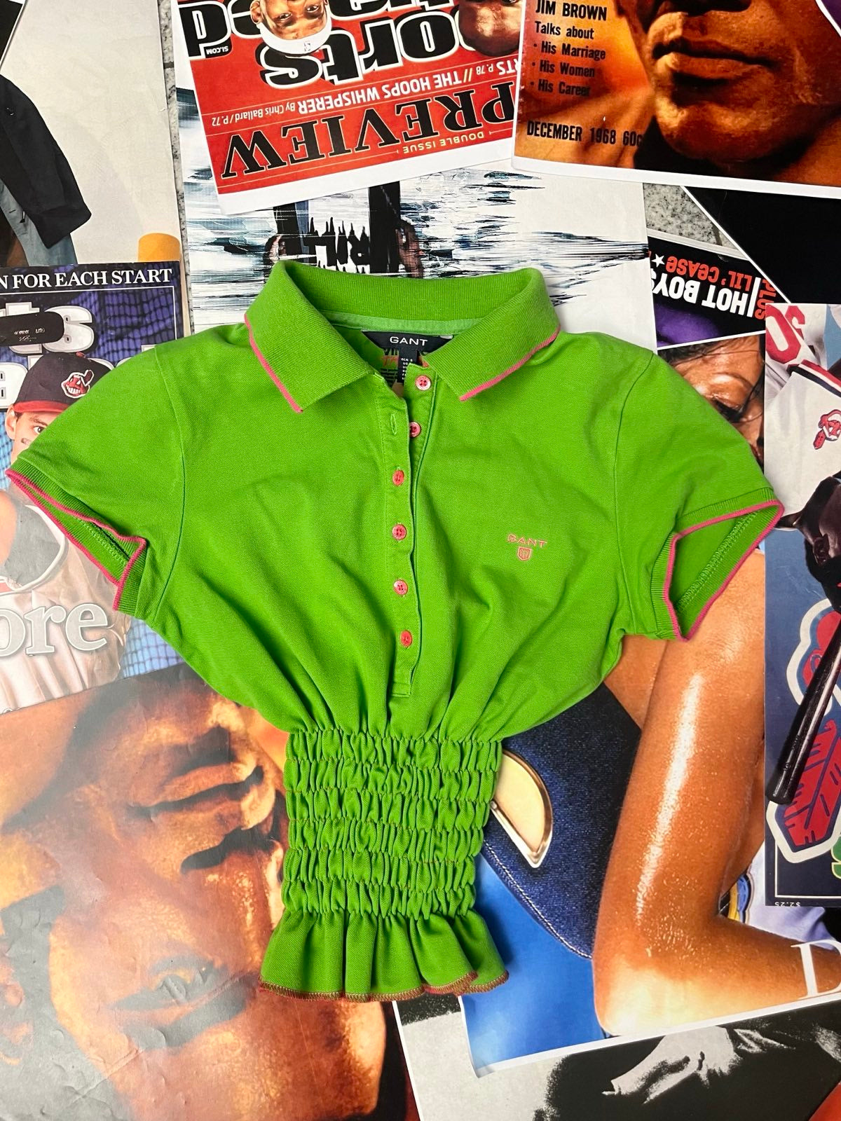 Reworked TOP s žabičkováním Gant zelený s růžovými detaily a límečkem S