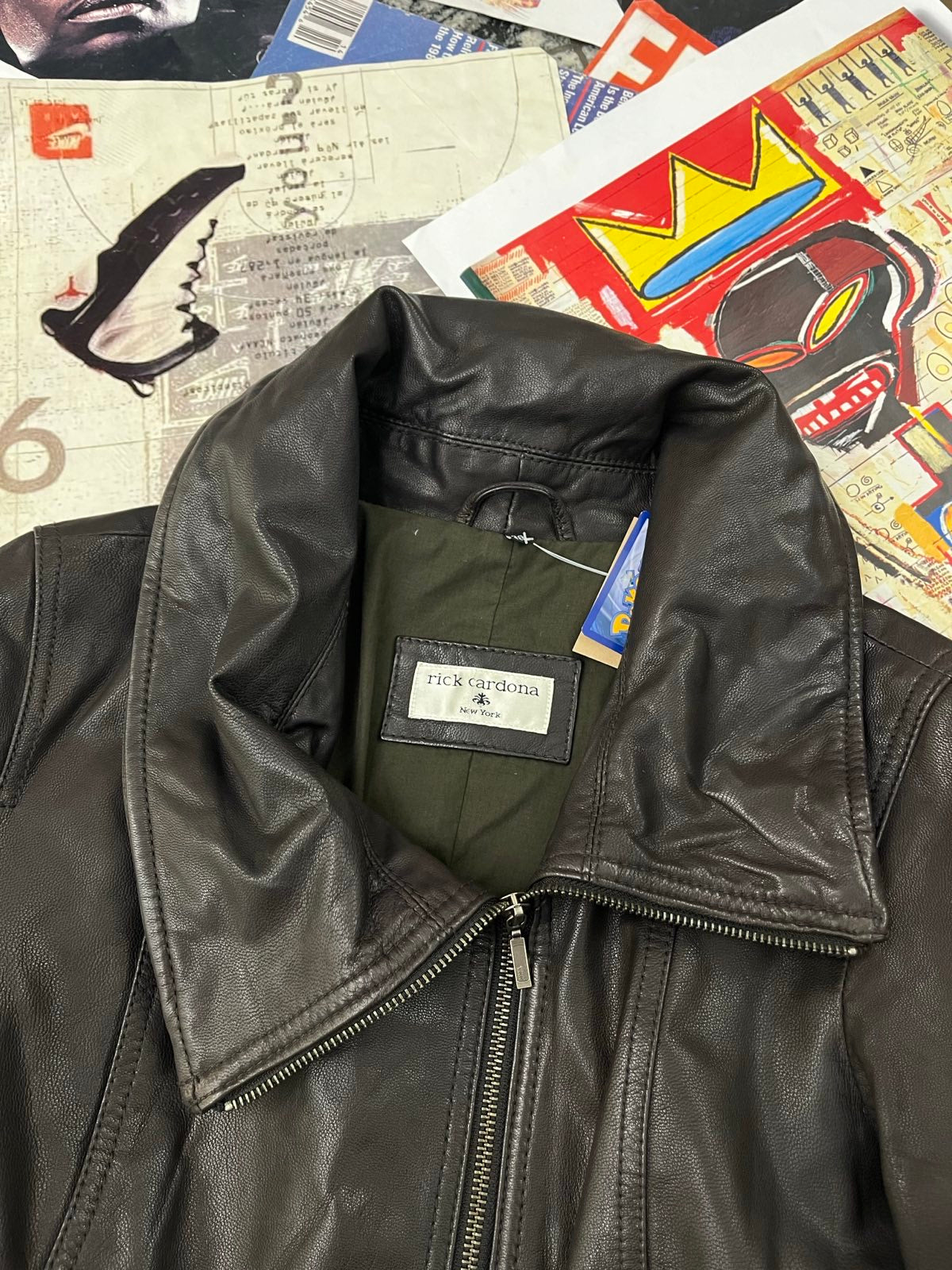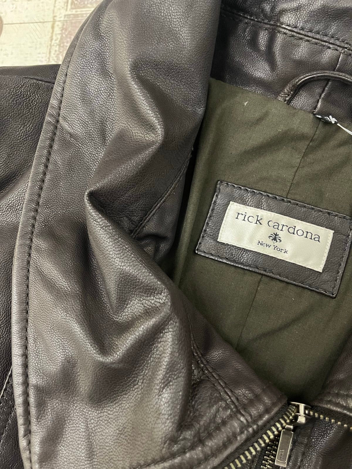 (M) Rick Cardona Bunda kožená tmavě fialovo hnědá, uvnitř army zelená