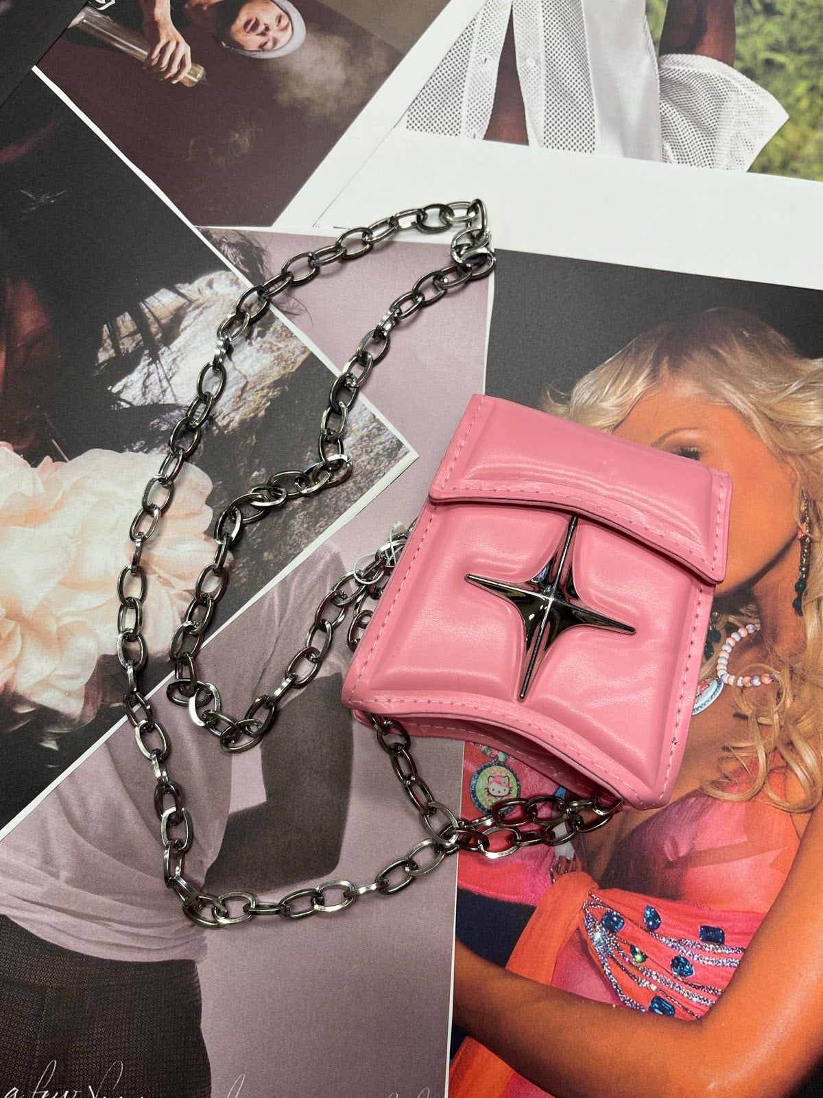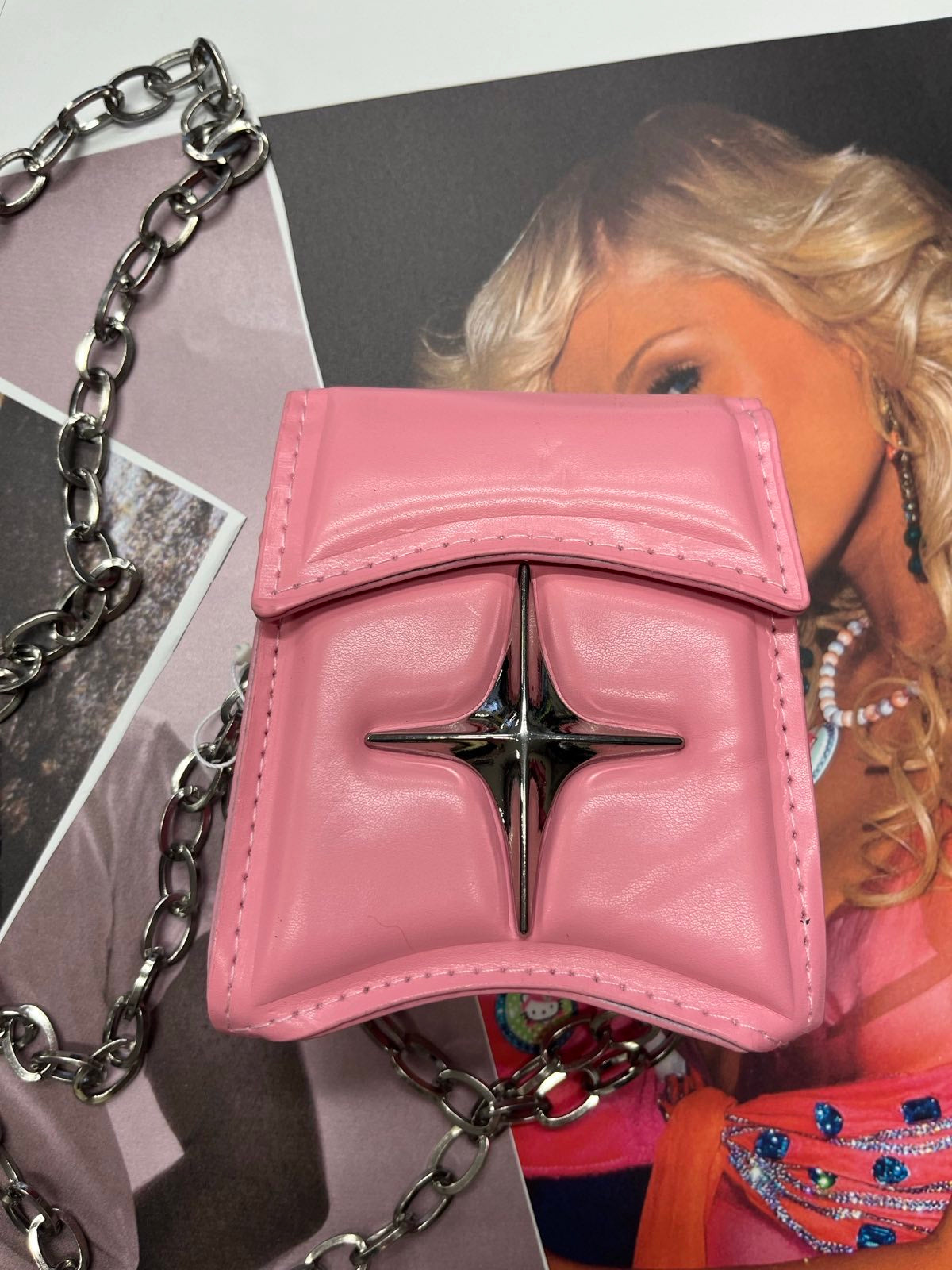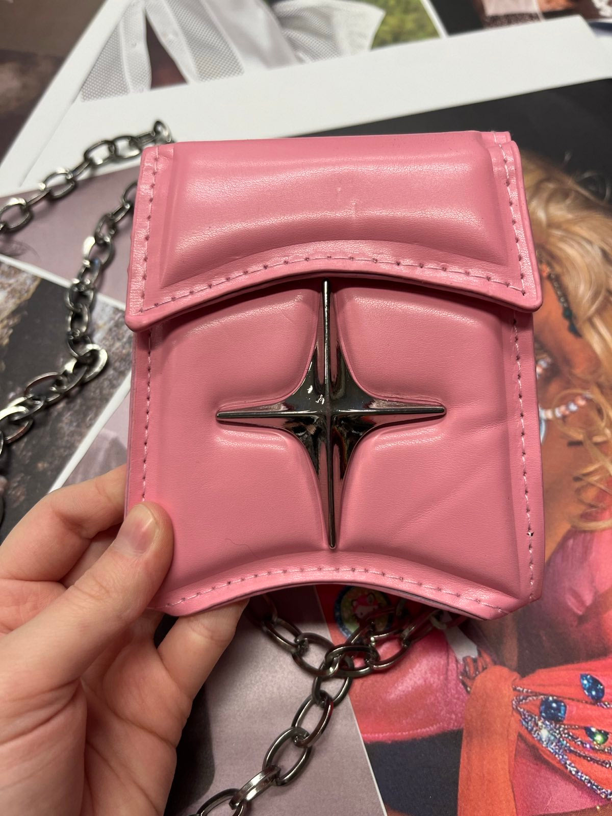 Růžová mini kabelka se stříbrnou hvězdou a řetízkem