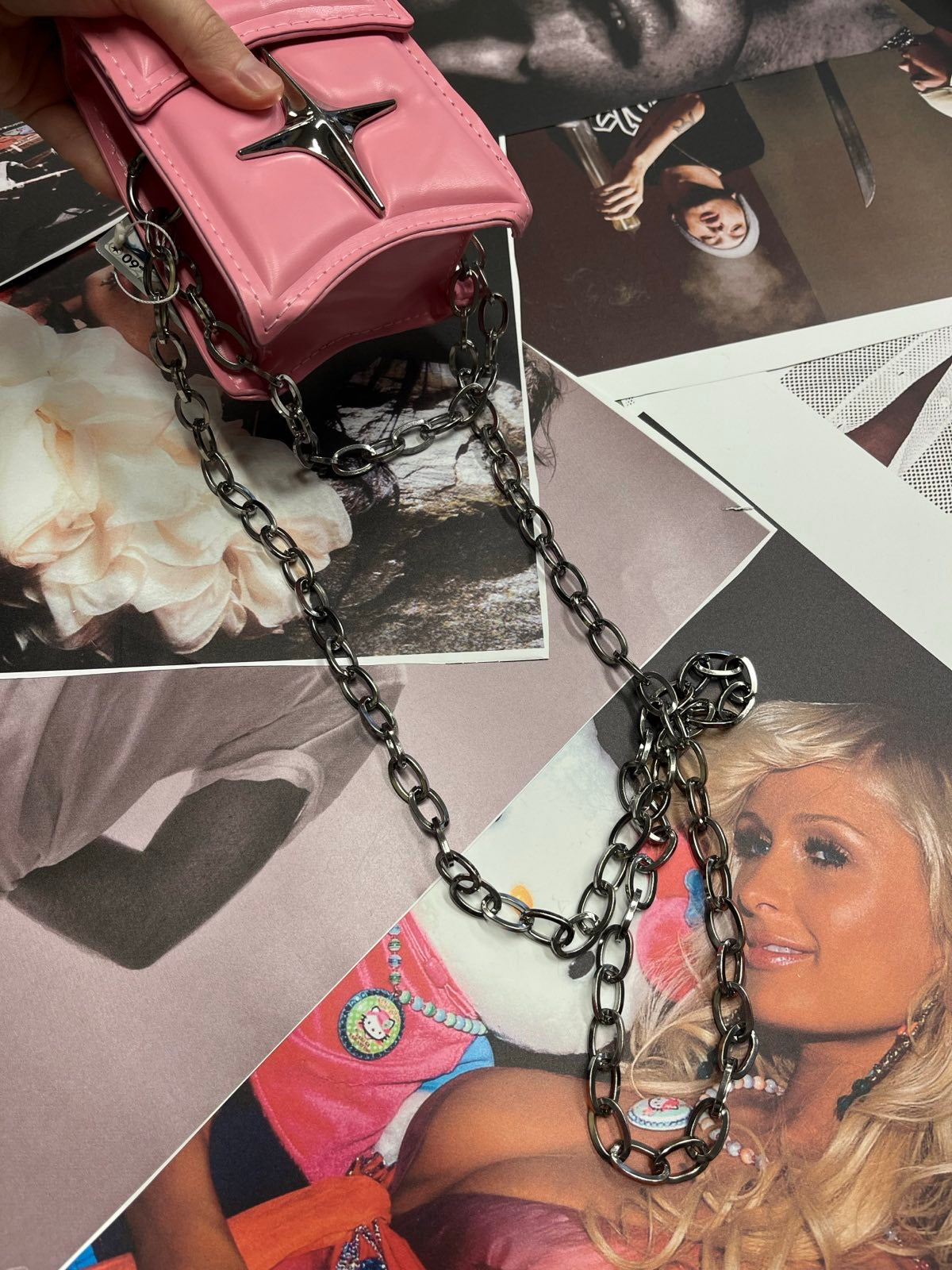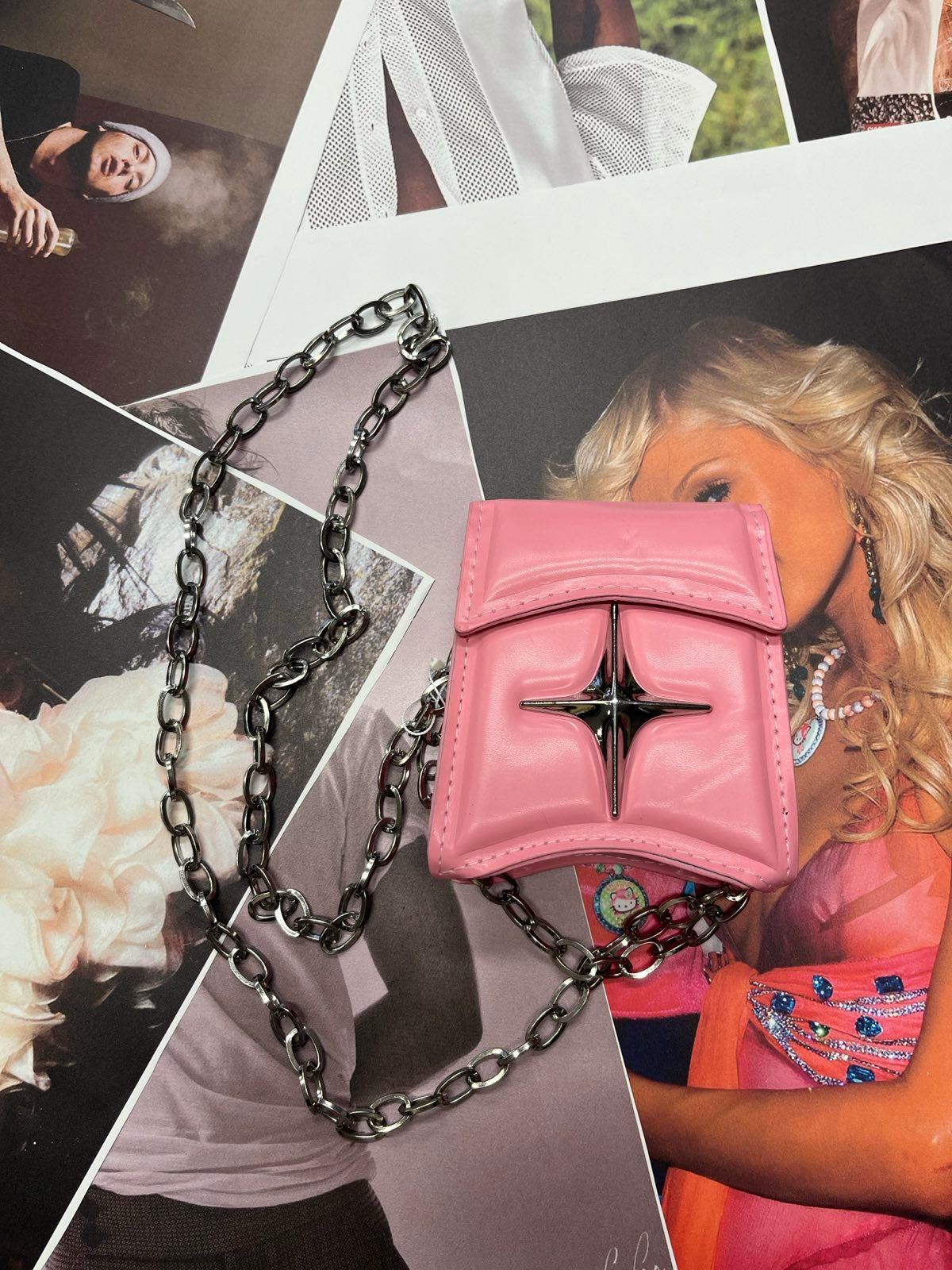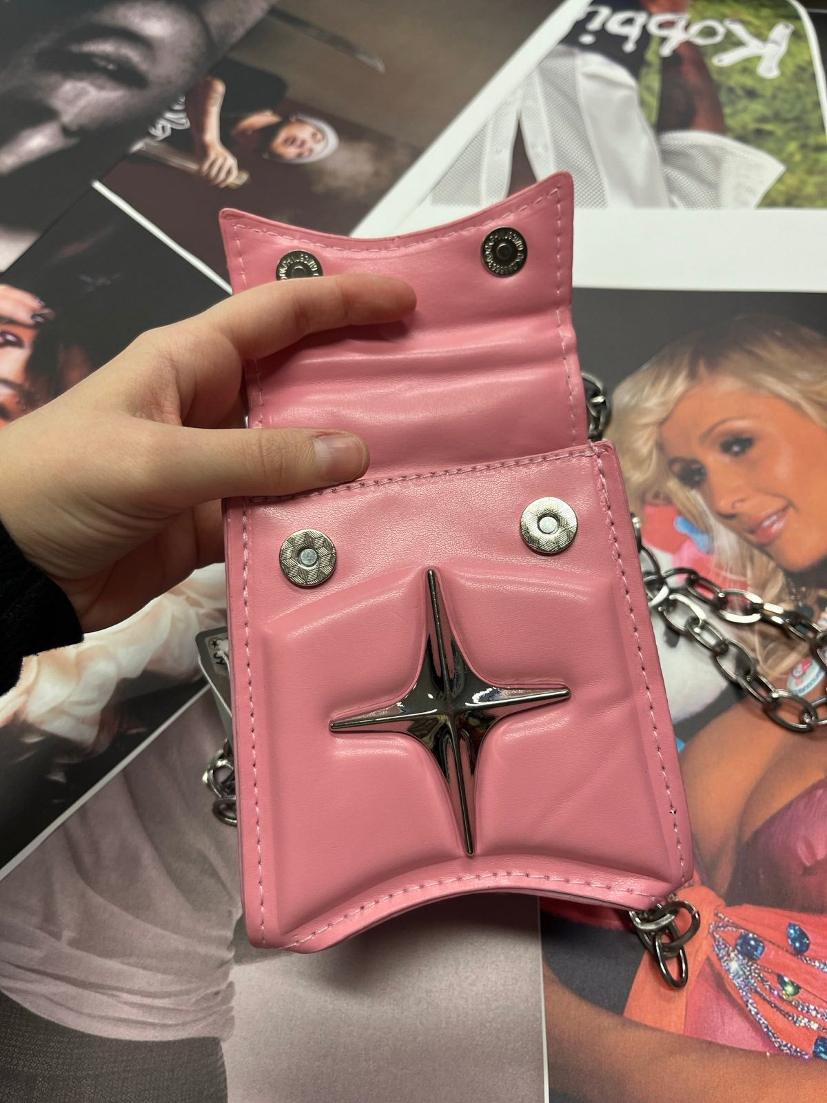 Růžová mini kabelka se stříbrnou hvězdou a řetízkem