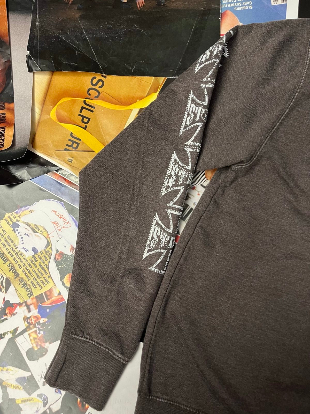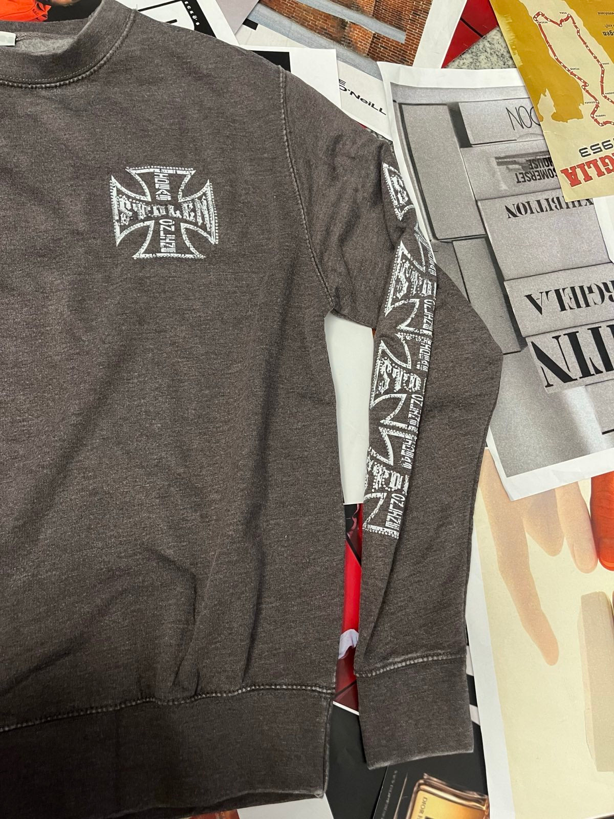 (S) 1of1 CREWNECK šedo–hnědý Westside Choppers rhinestones logo