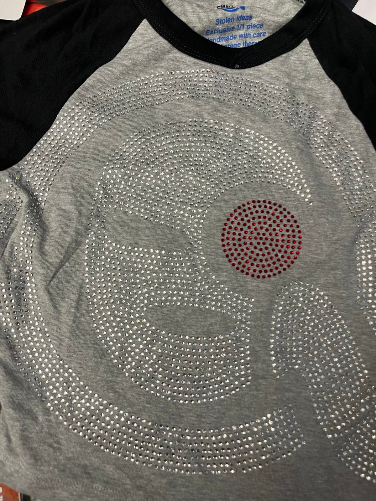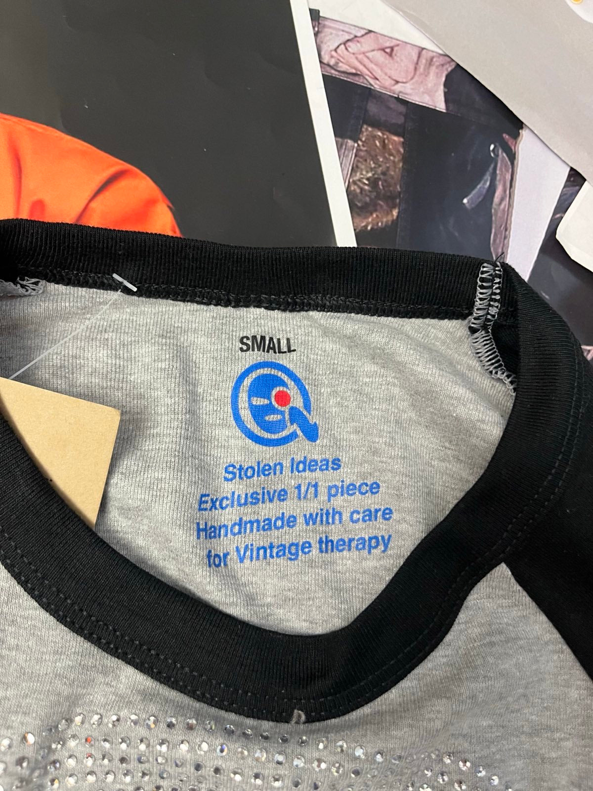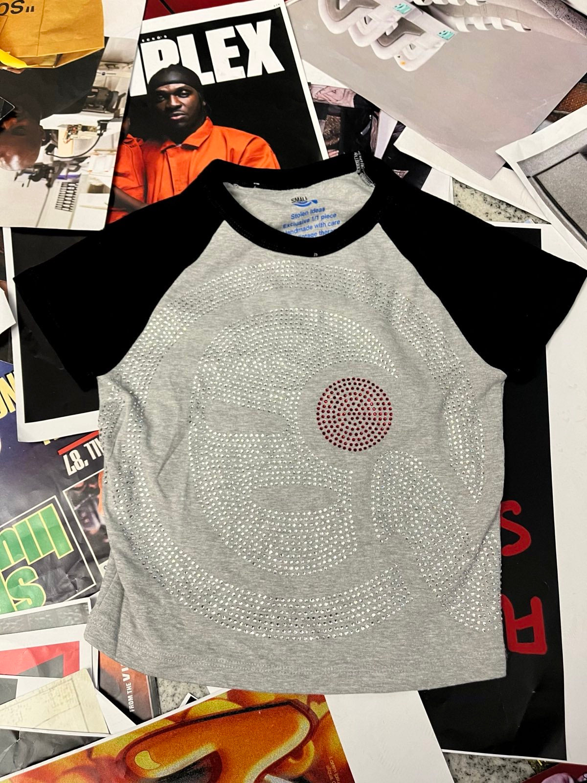 (S) 1of1 DÁMSKÉ BABYTEE šedé STOLEN rhinestones logo
