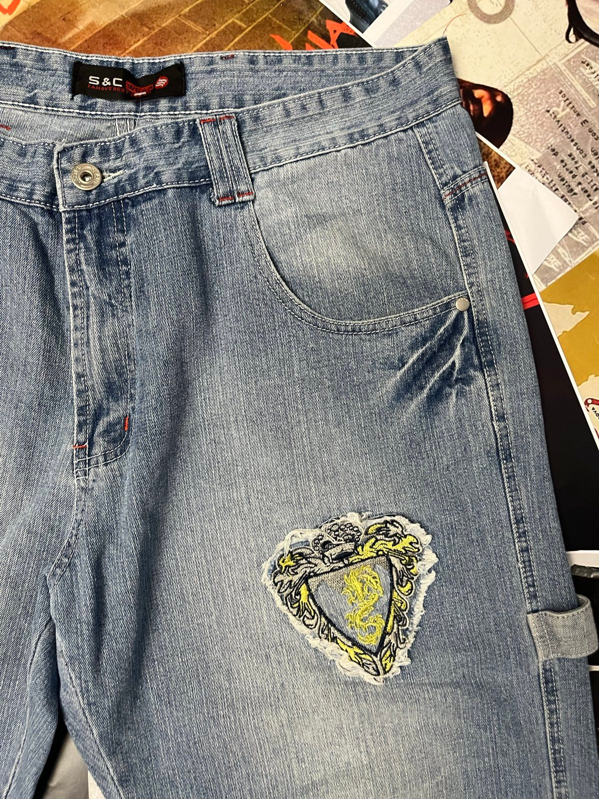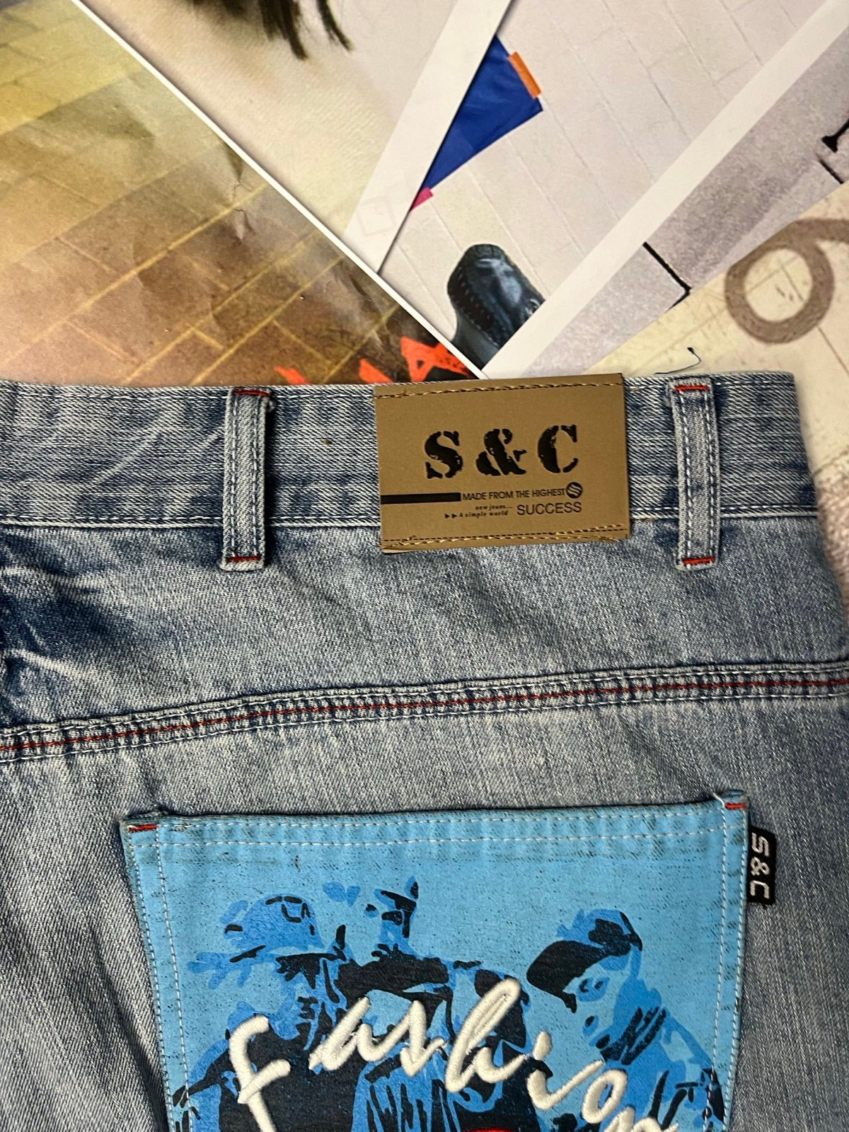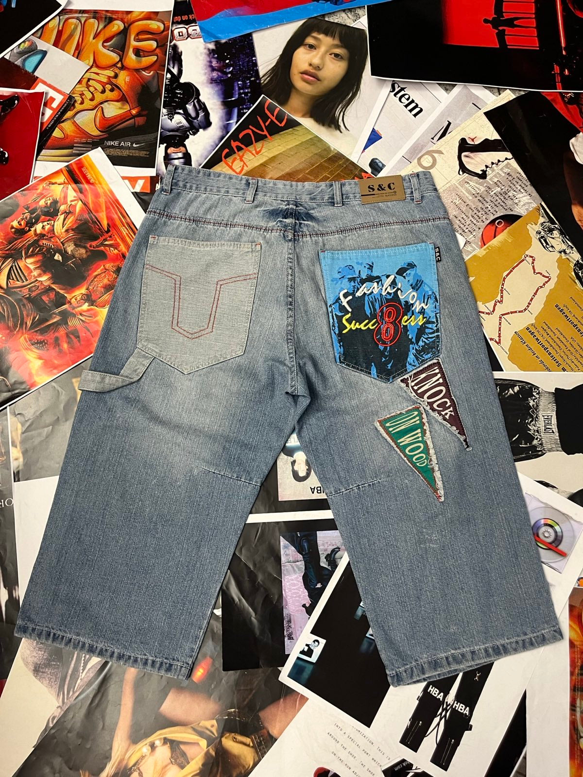 (2XL) S and C wear pánské kraťasy s nášivkama riflové