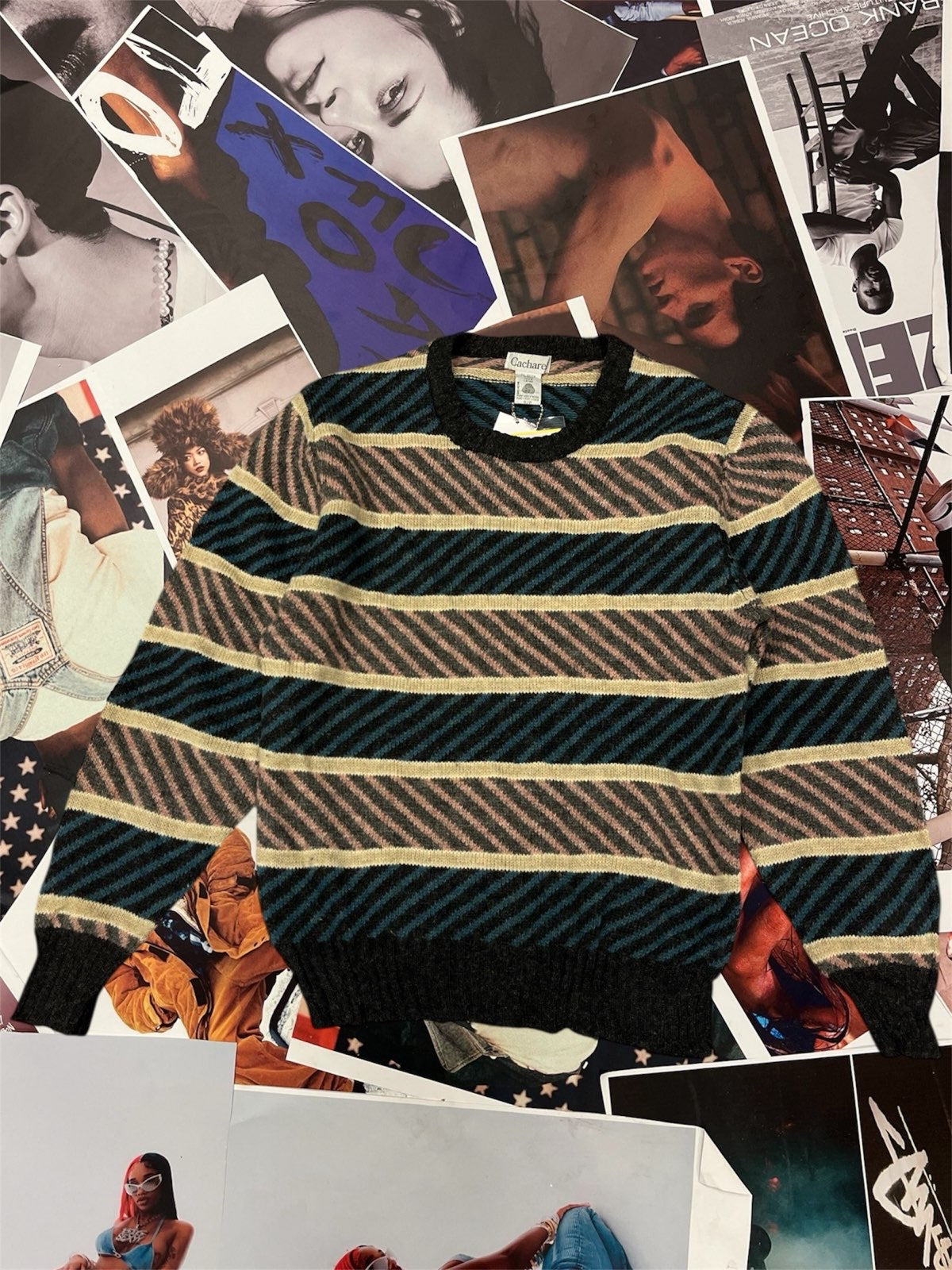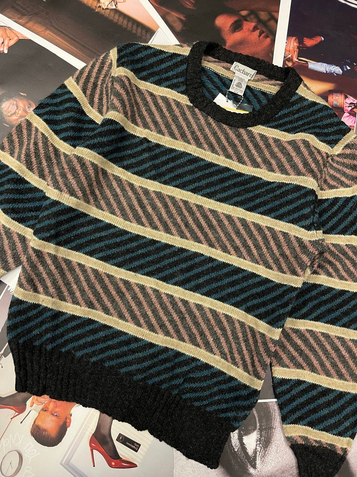 (S) Cachare svetr proužkovaný zeleno–růžový
