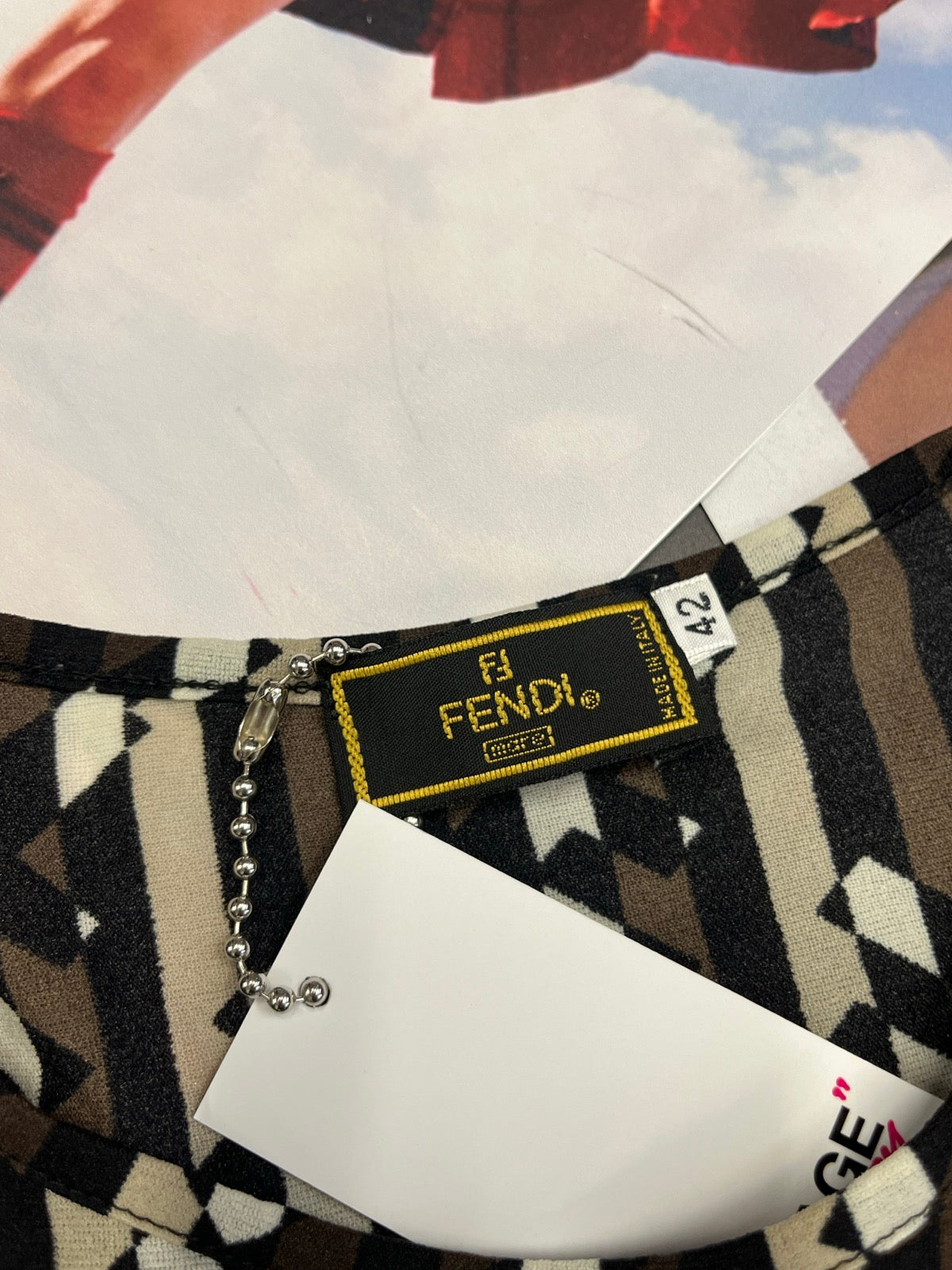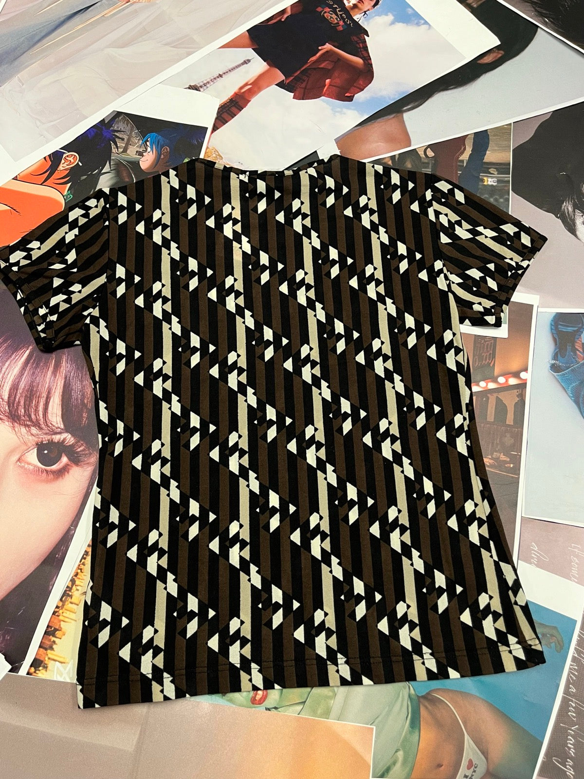 (S) Fendi top s monogramem hnědo–černý krátký rukáv
