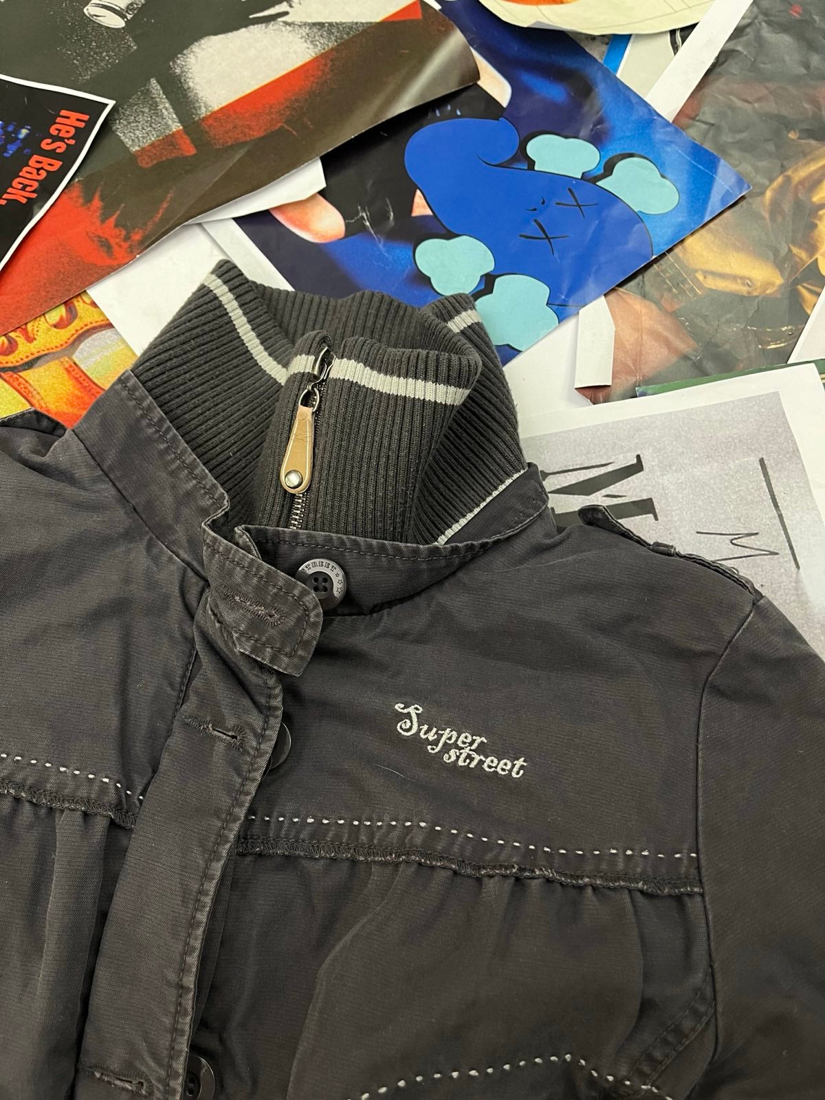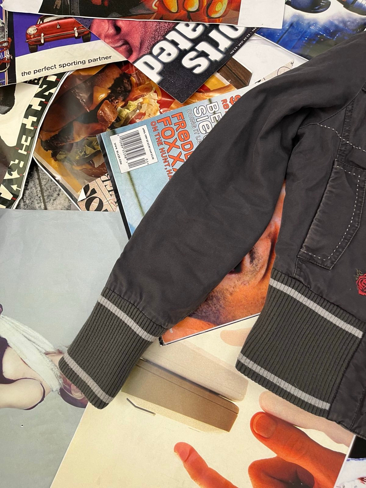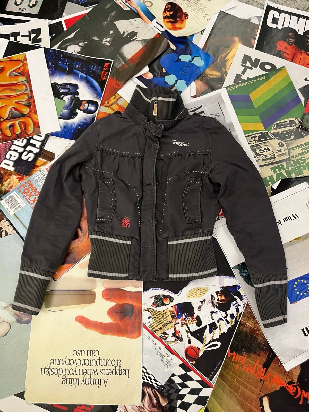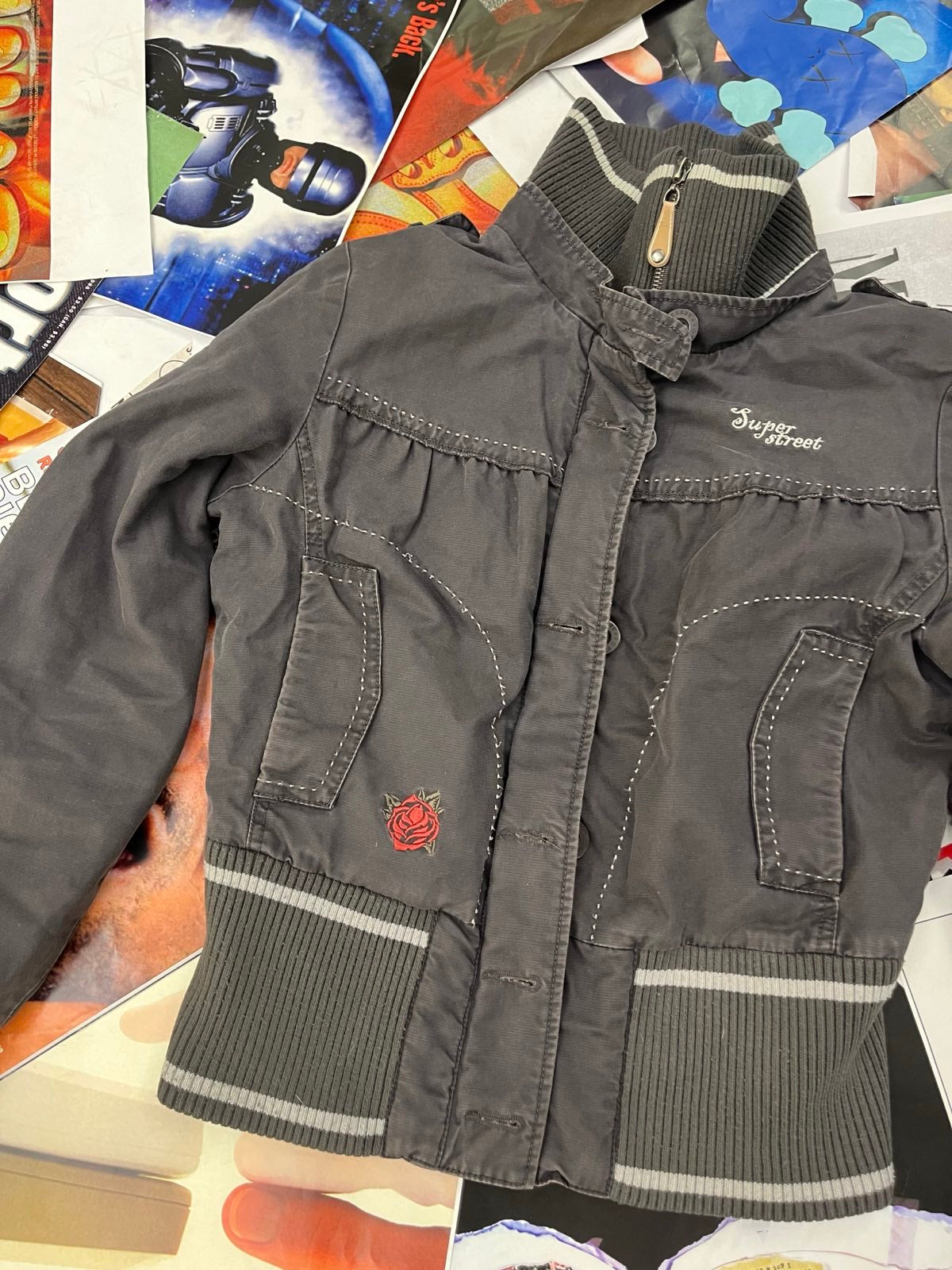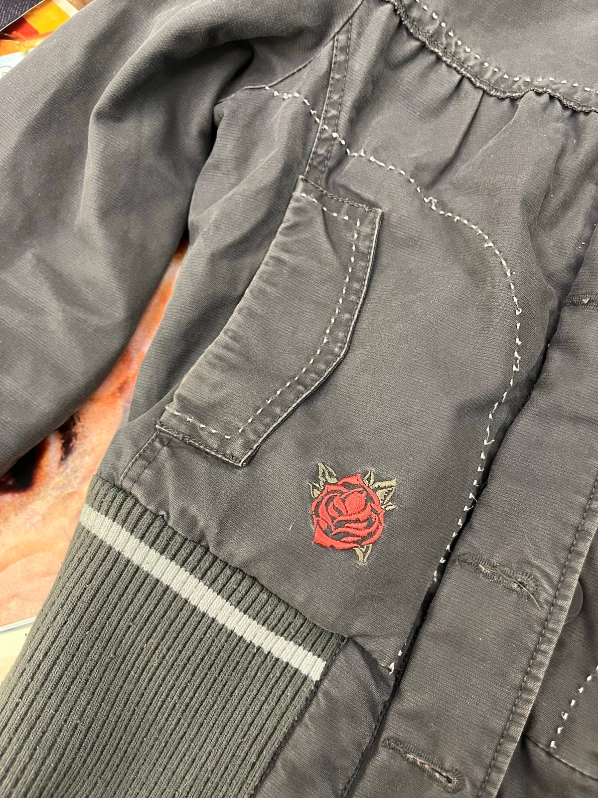 (S) Kenvelo bunda dámská zašedlá fialová bomber, nášivka růže