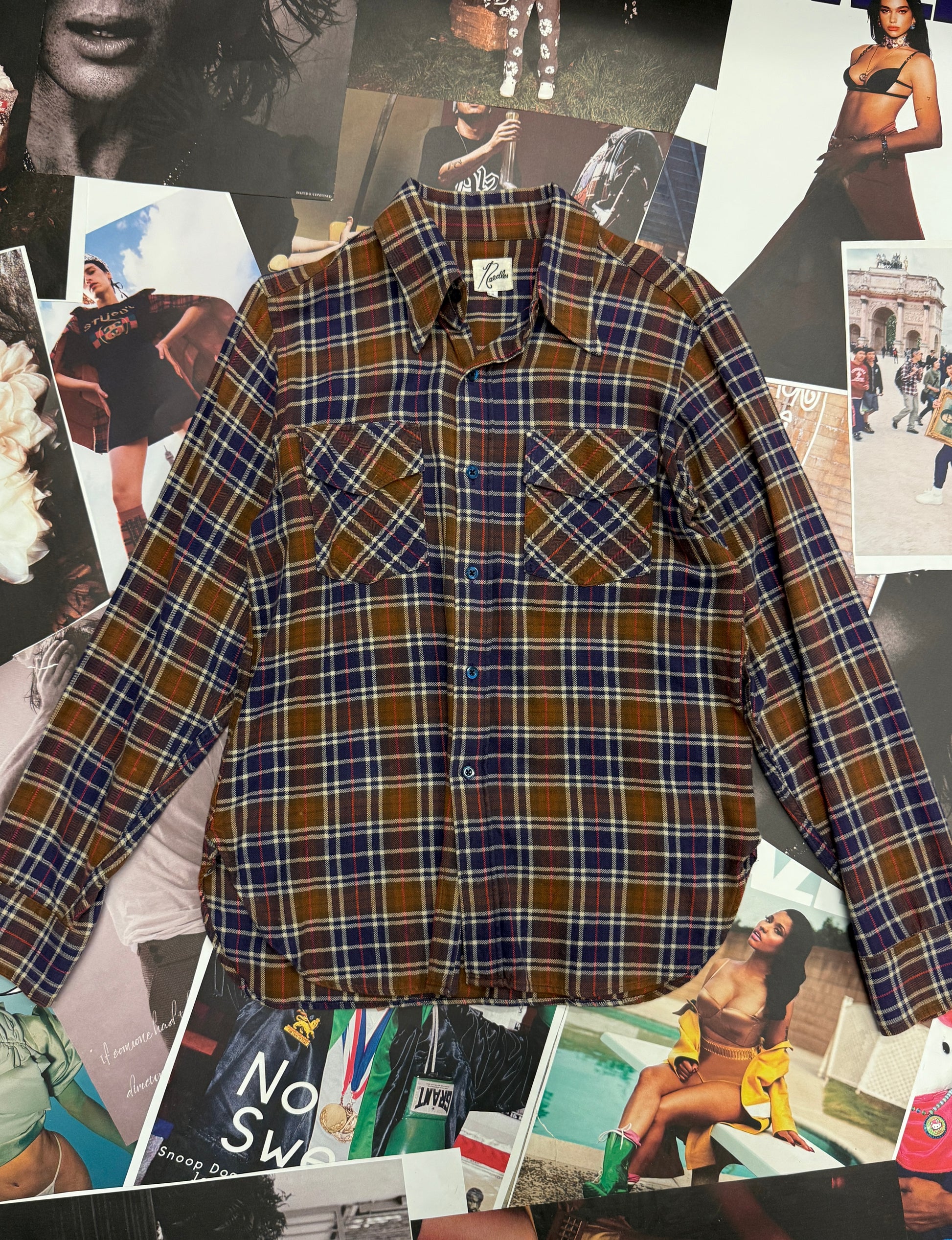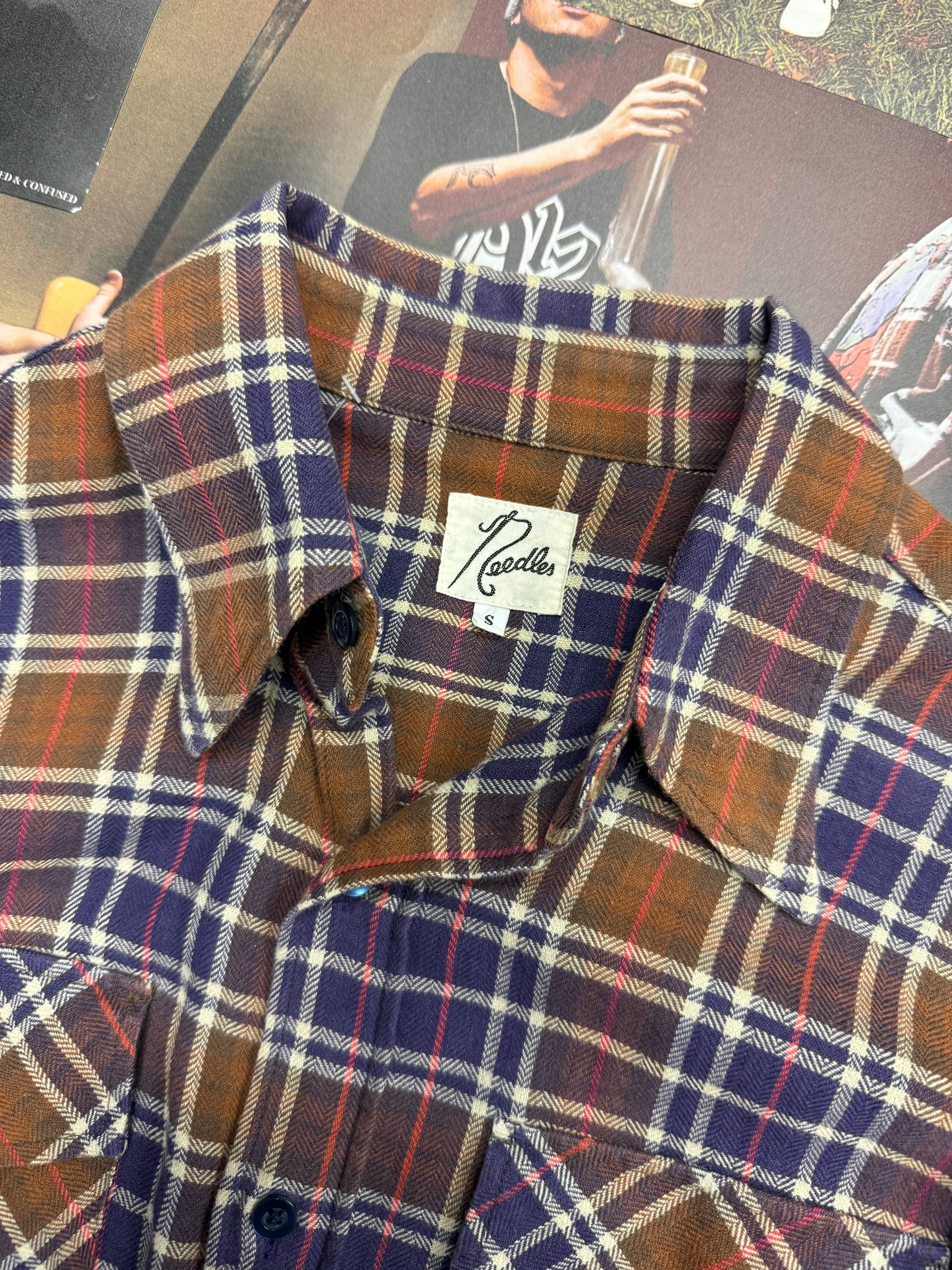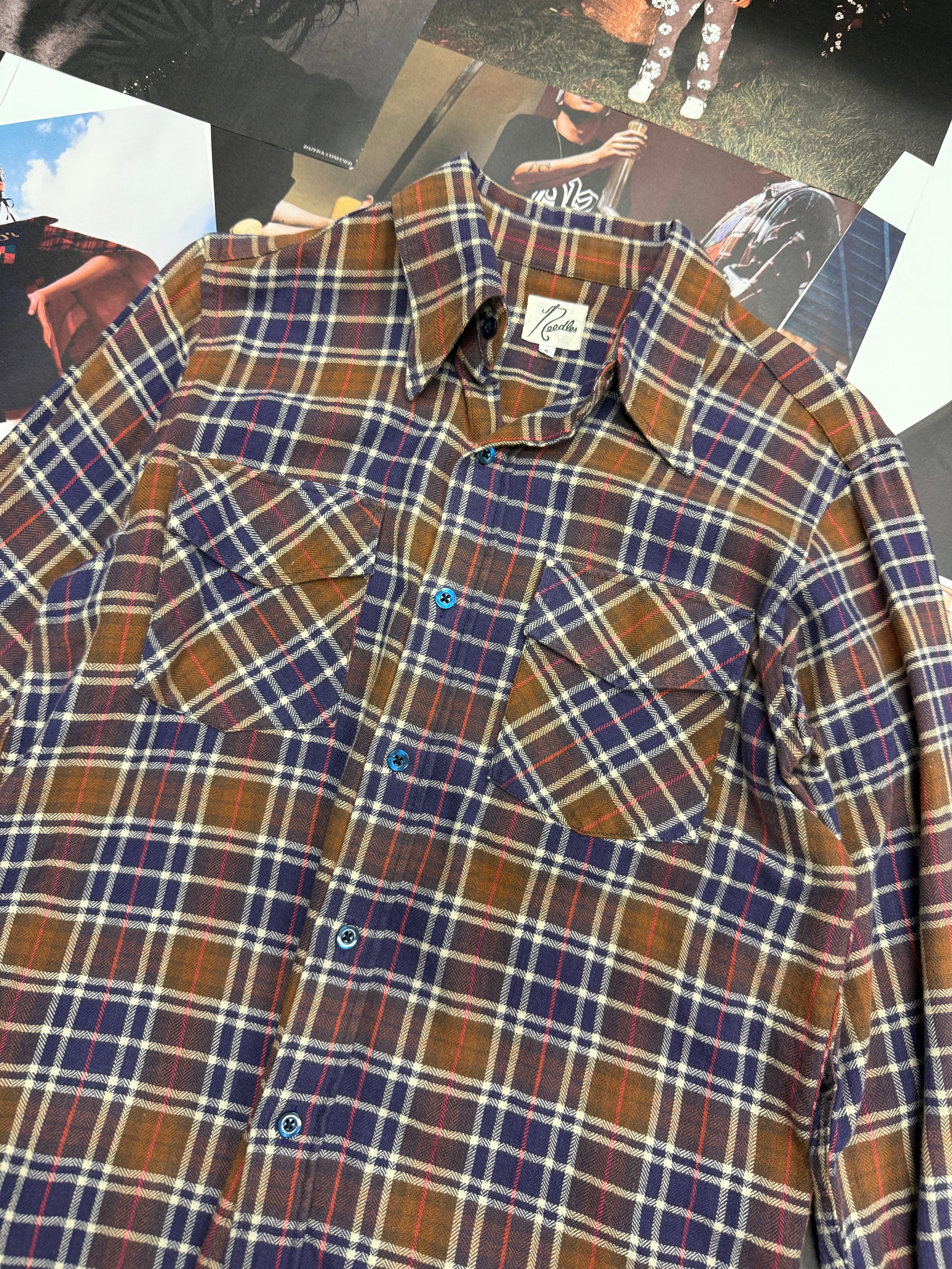 (S) Needles košile flanelová hnědá s dlouhým rukávem