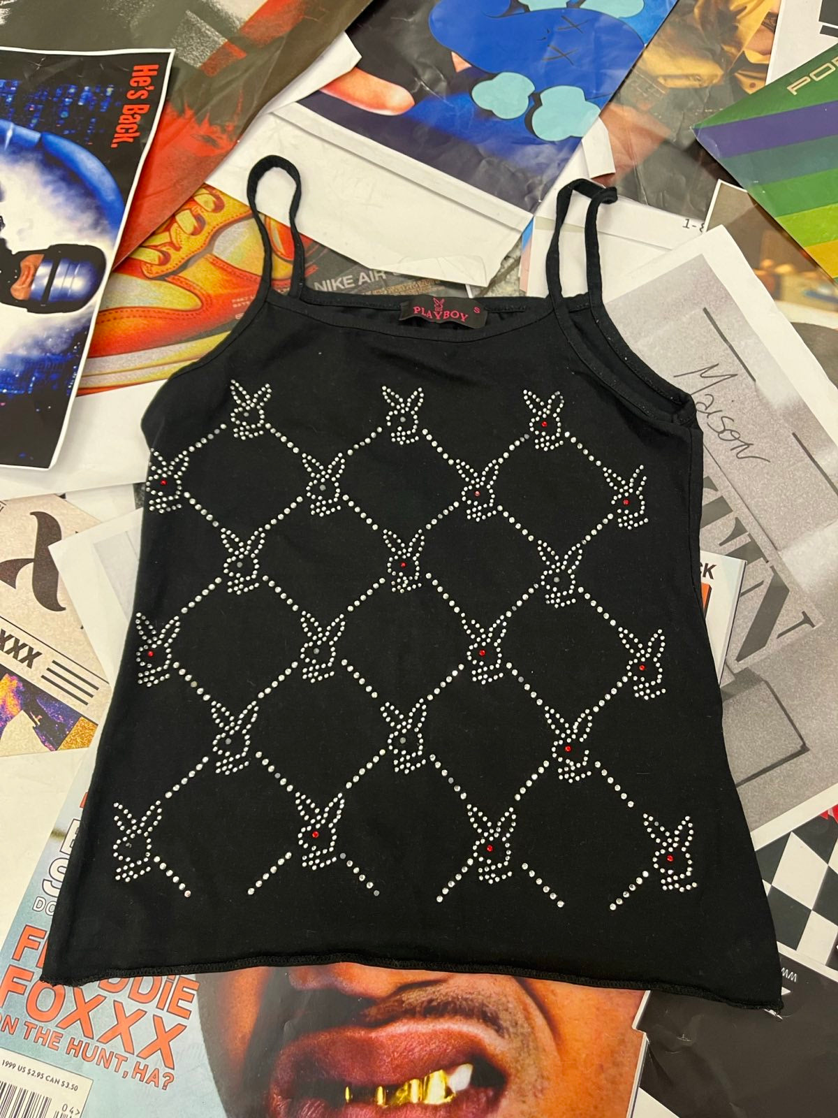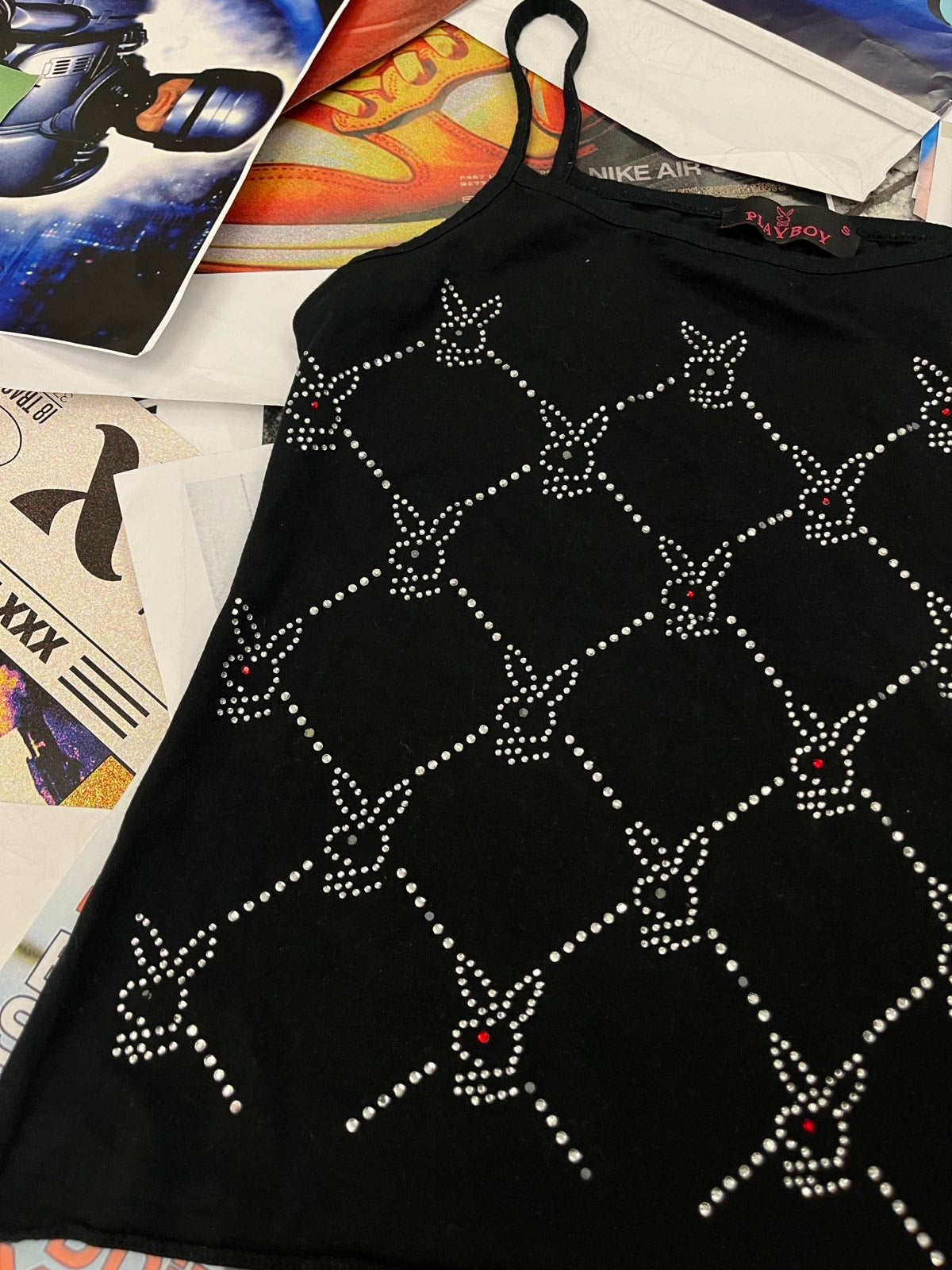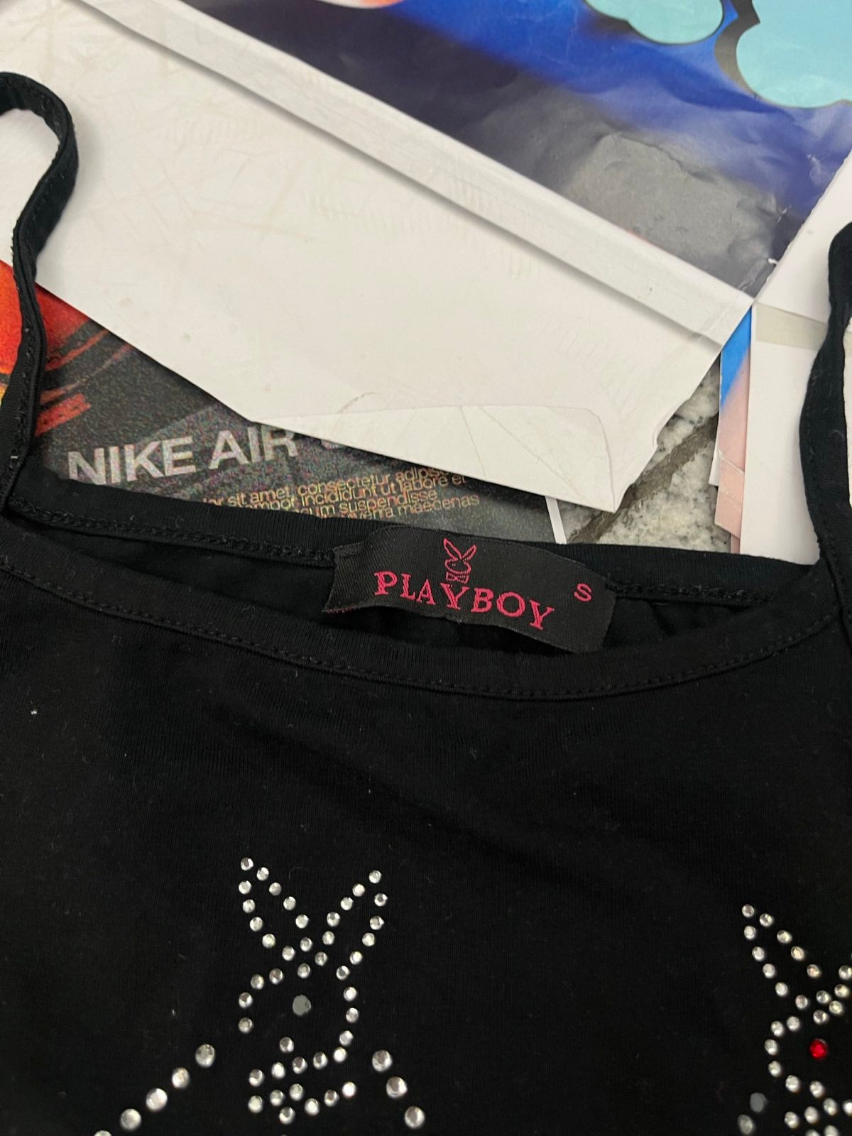 (S) PLAYBOY tílko černé s playboy z kamínků
