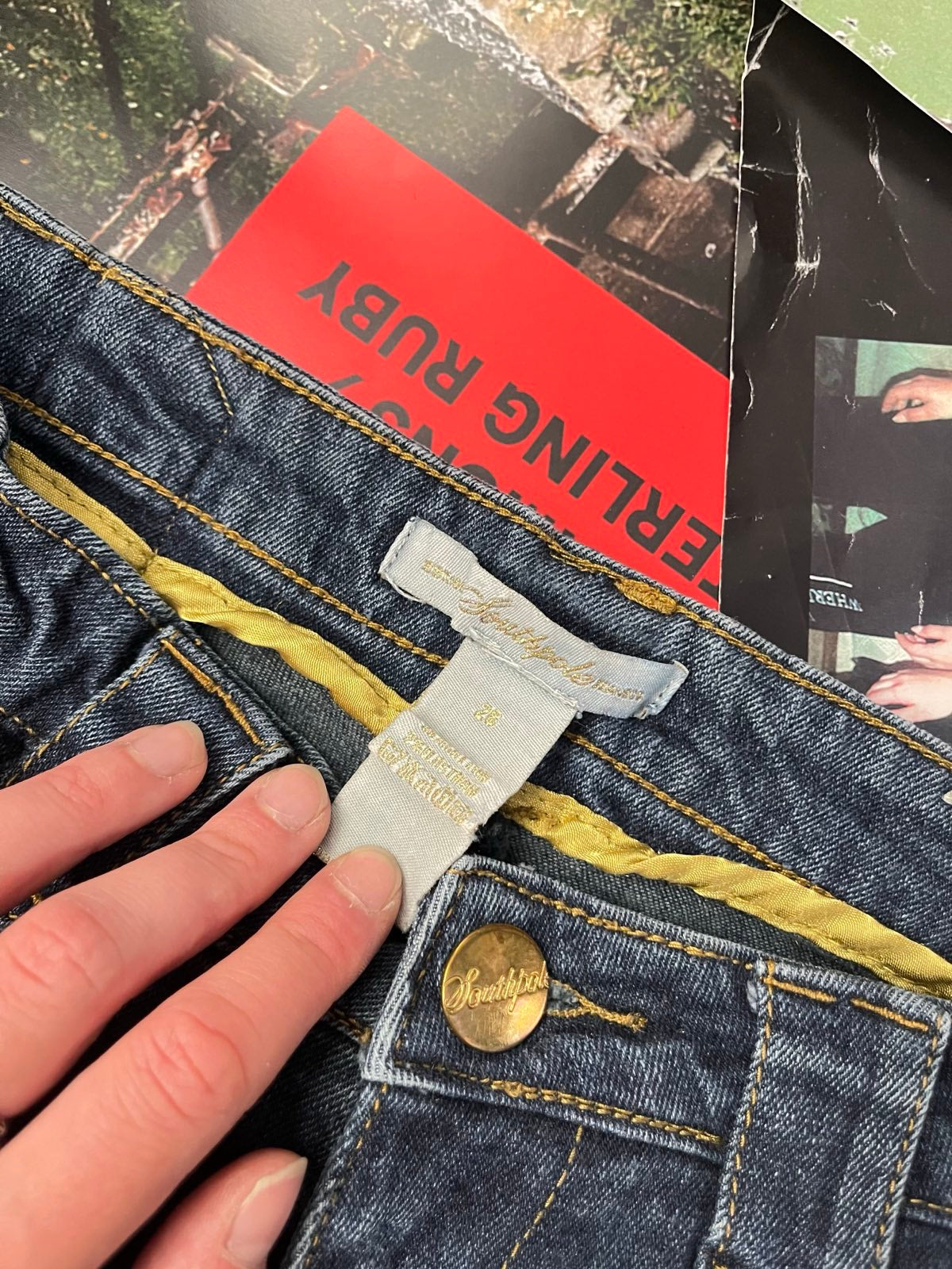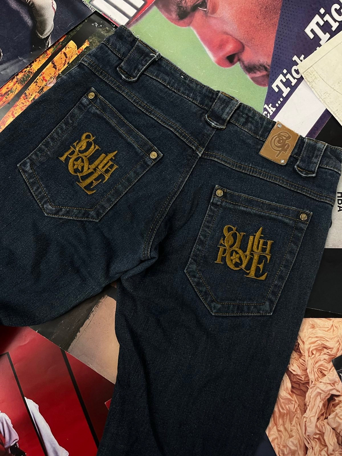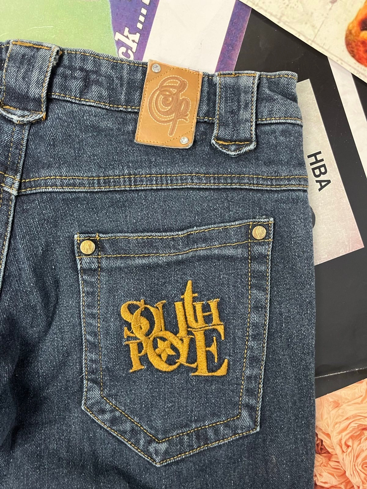 Southpole DŽÍNY tmavě modrý denim, výšivky Southpole na zadních kapsách XS