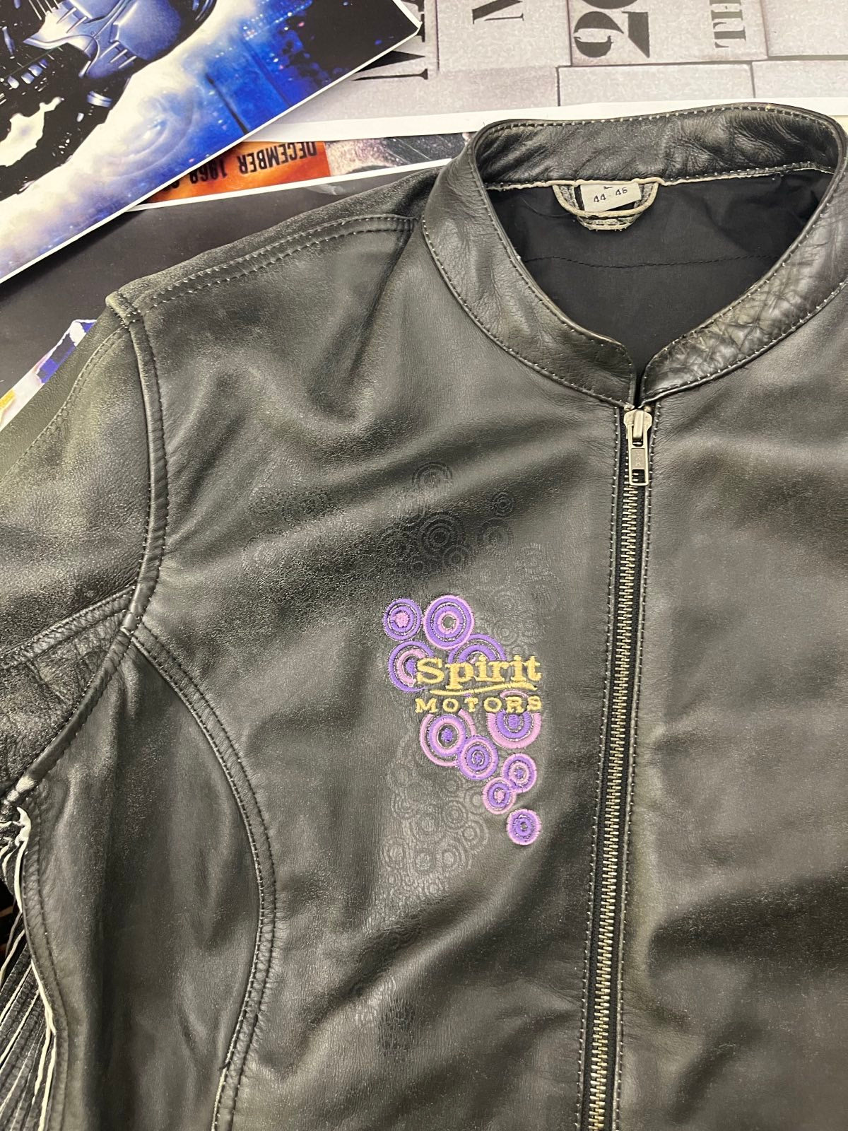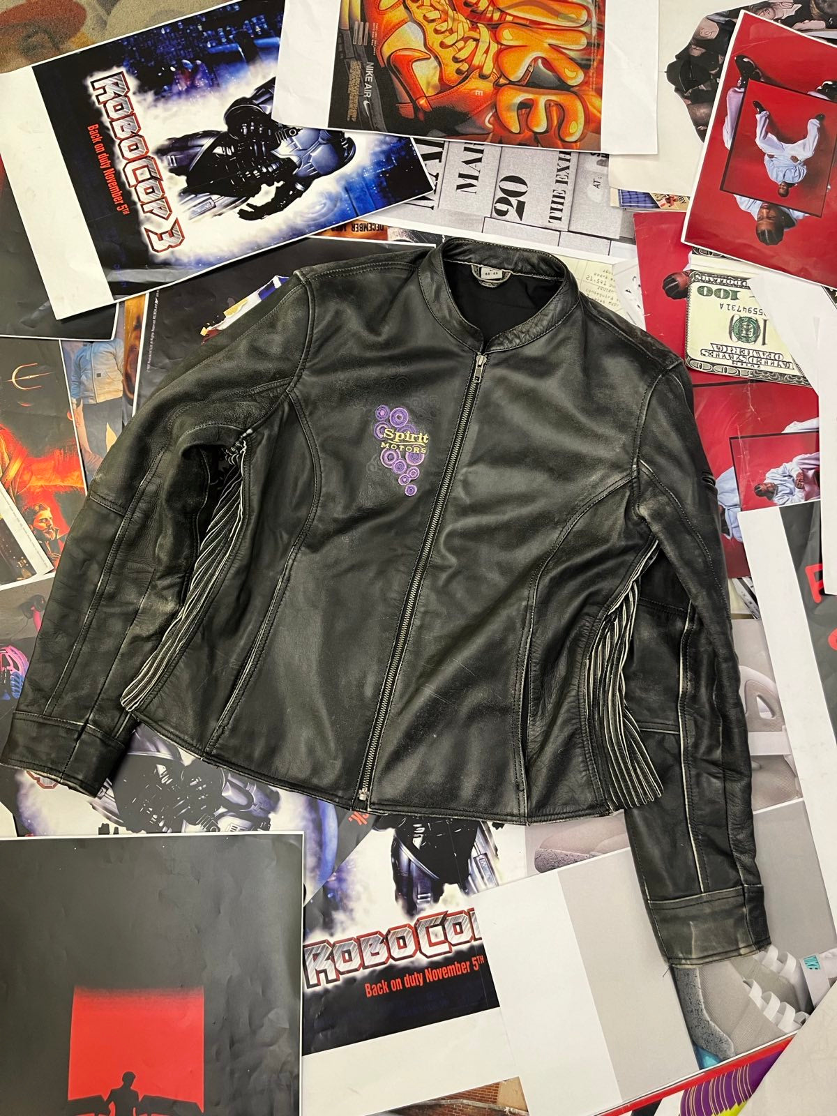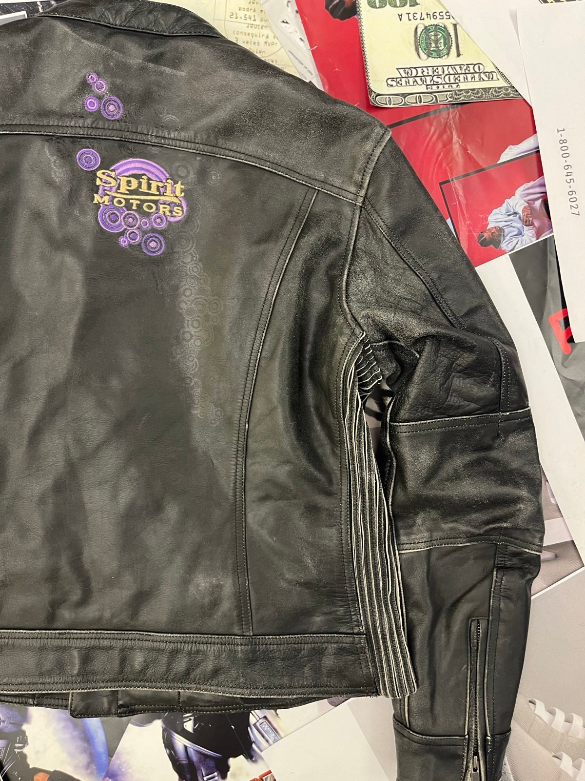 (L) Spirit motors kožená bunda dámská černá s fialovými detaily, logo na zádech