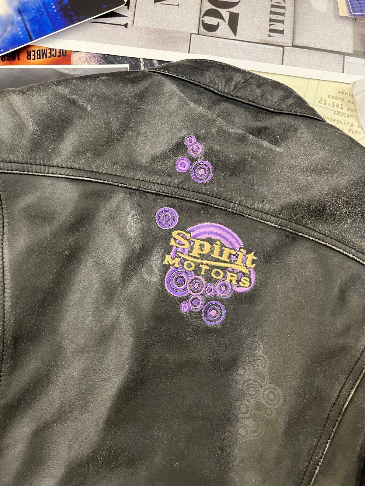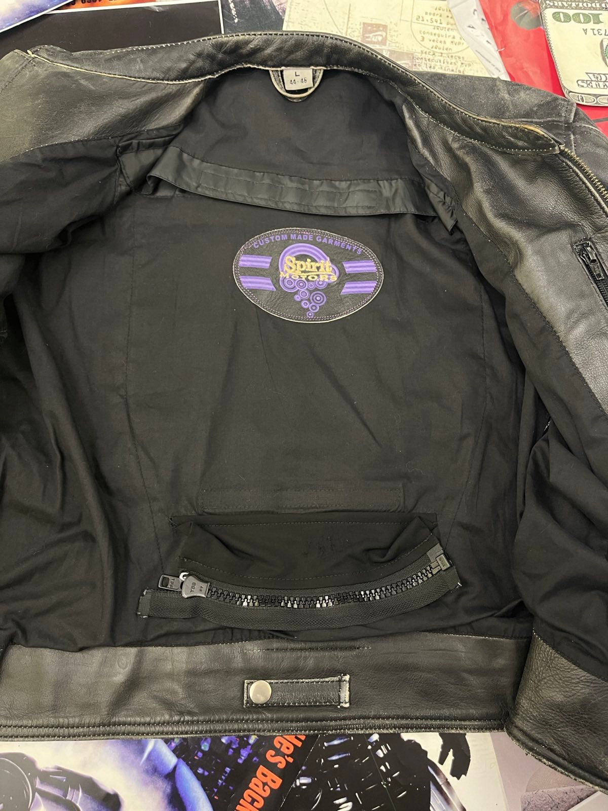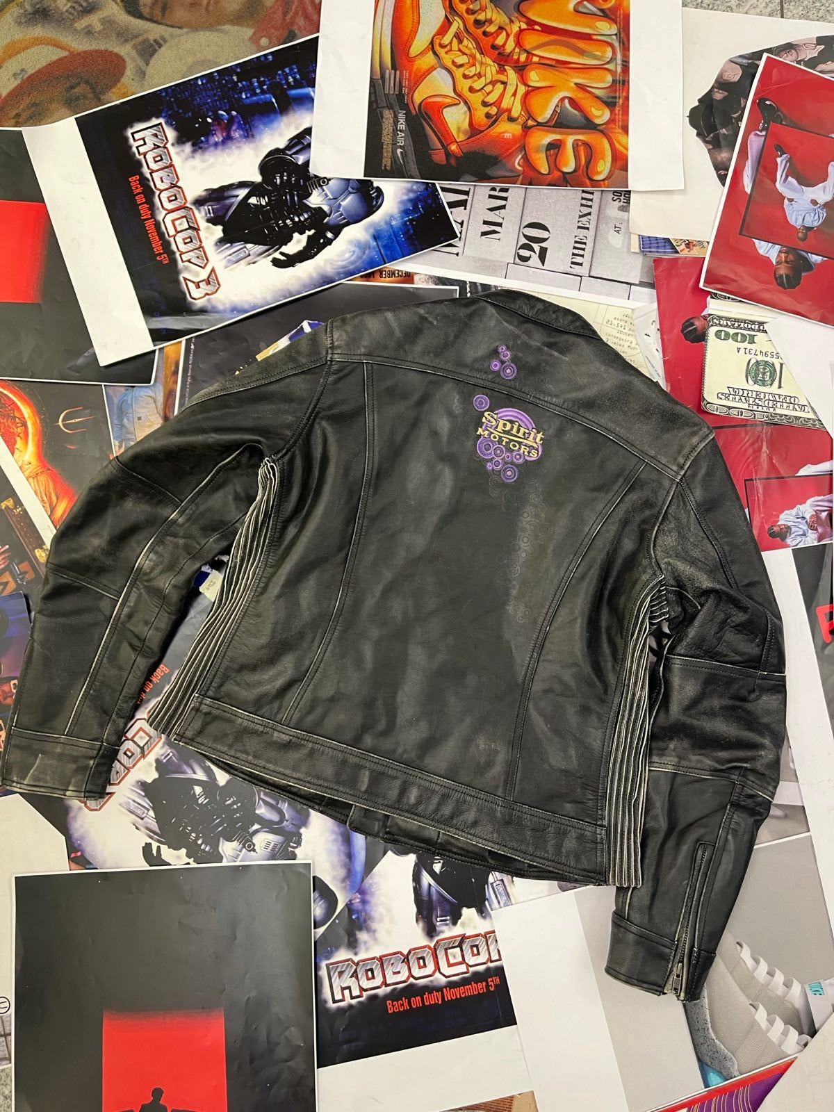 (L) Spirit motors kožená bunda dámská černá s fialovými detaily, logo na zádech
