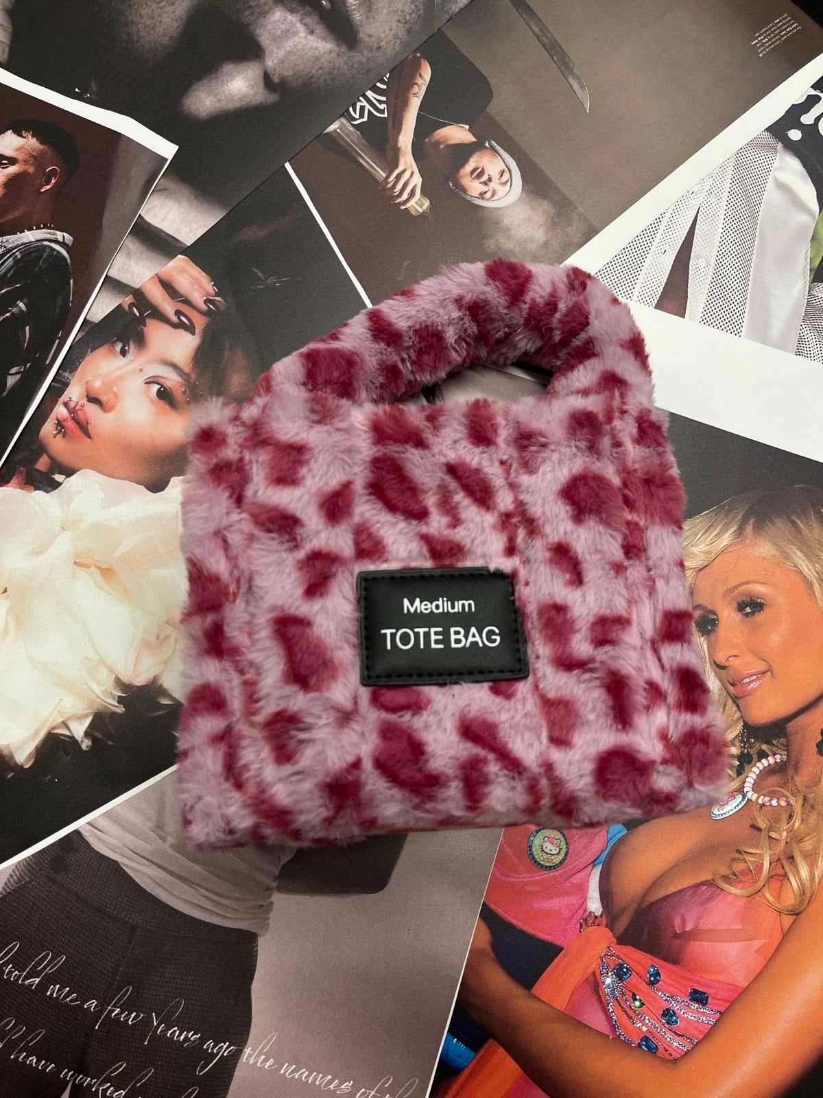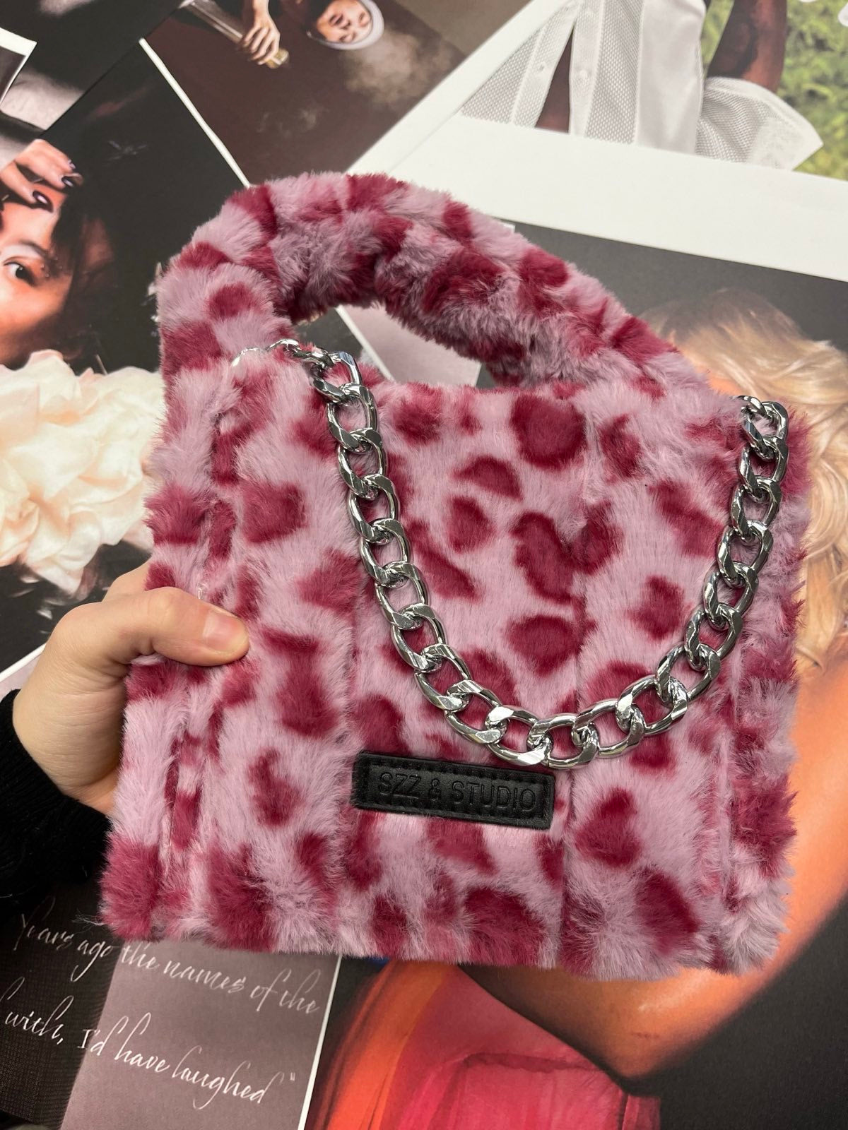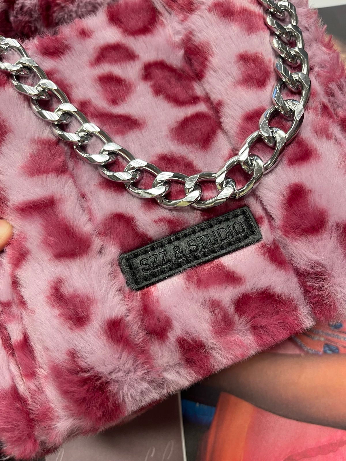 SZZ and Studio kabelka růžová chlupatá s gepardím printem a řetízkem