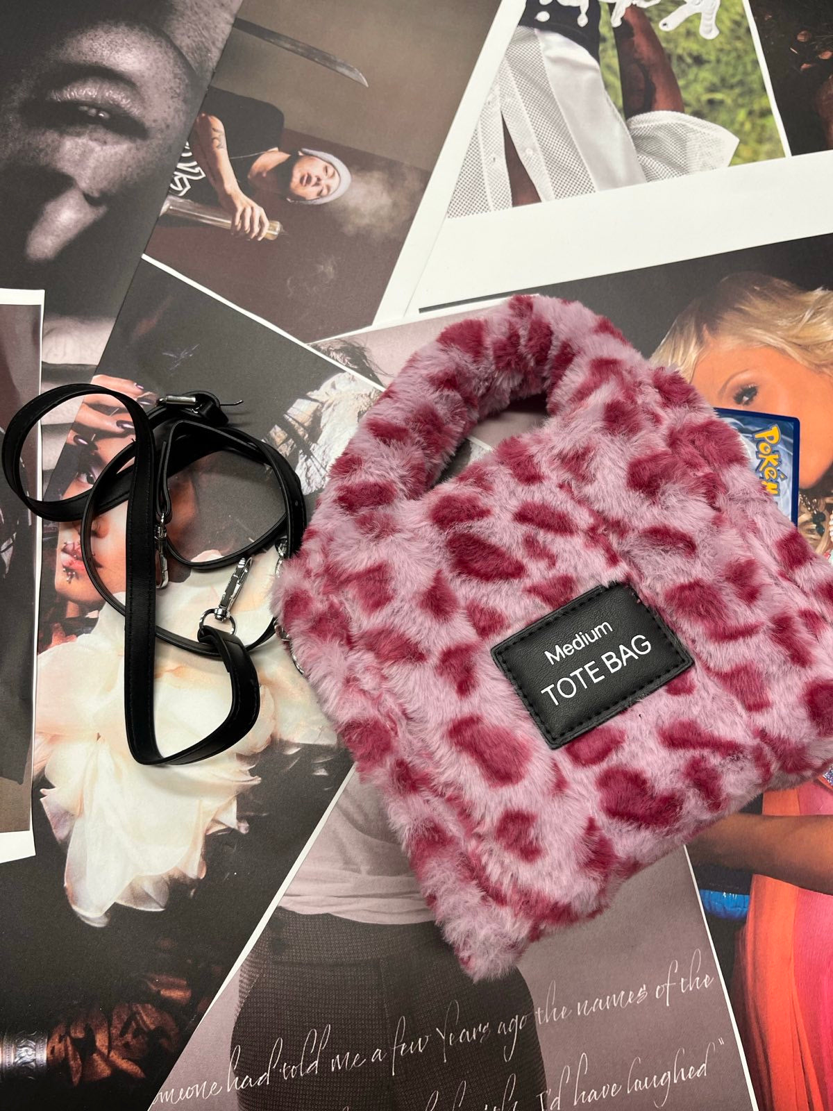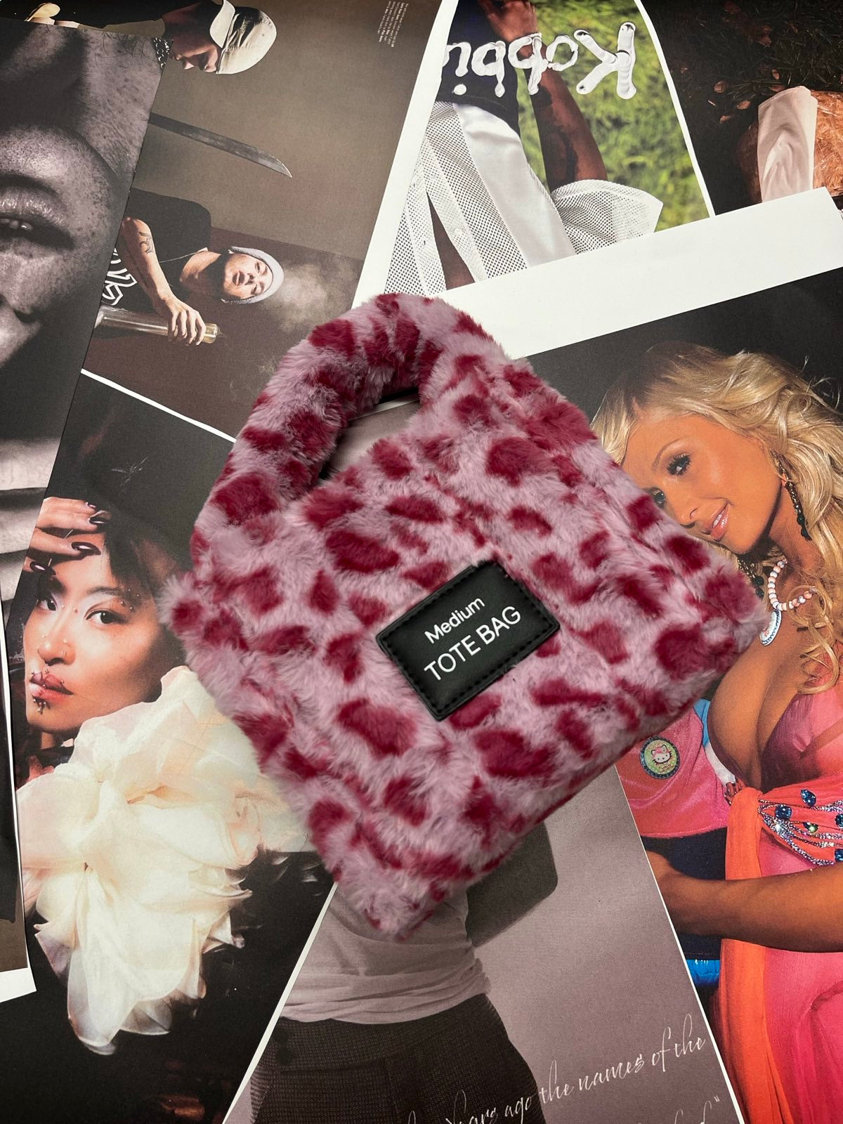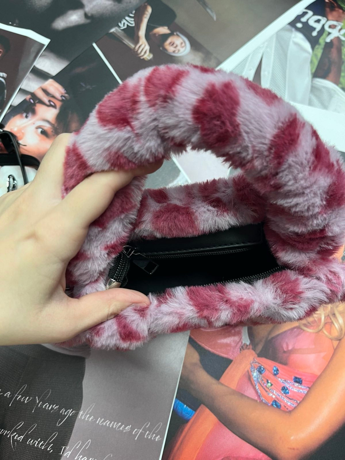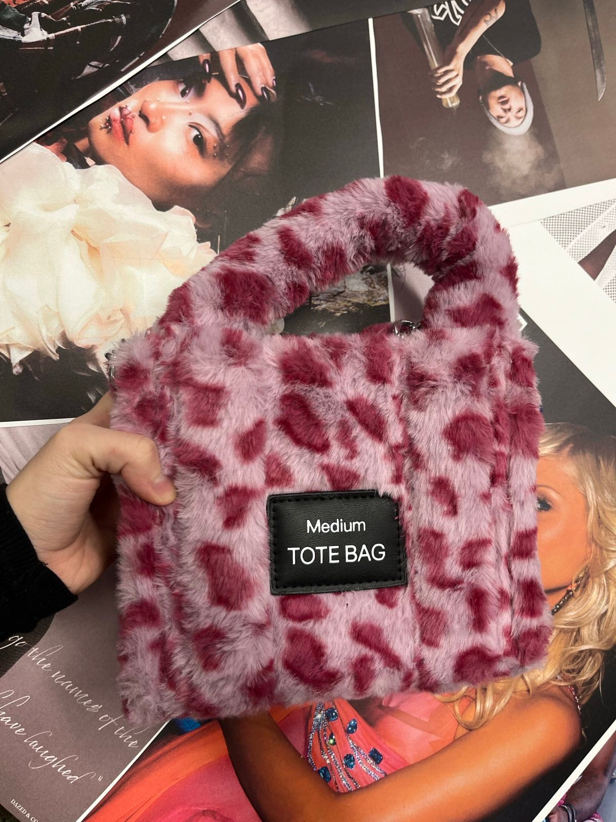 SZZ and Studio kabelka růžová chlupatá s gepardím printem a řetízkem