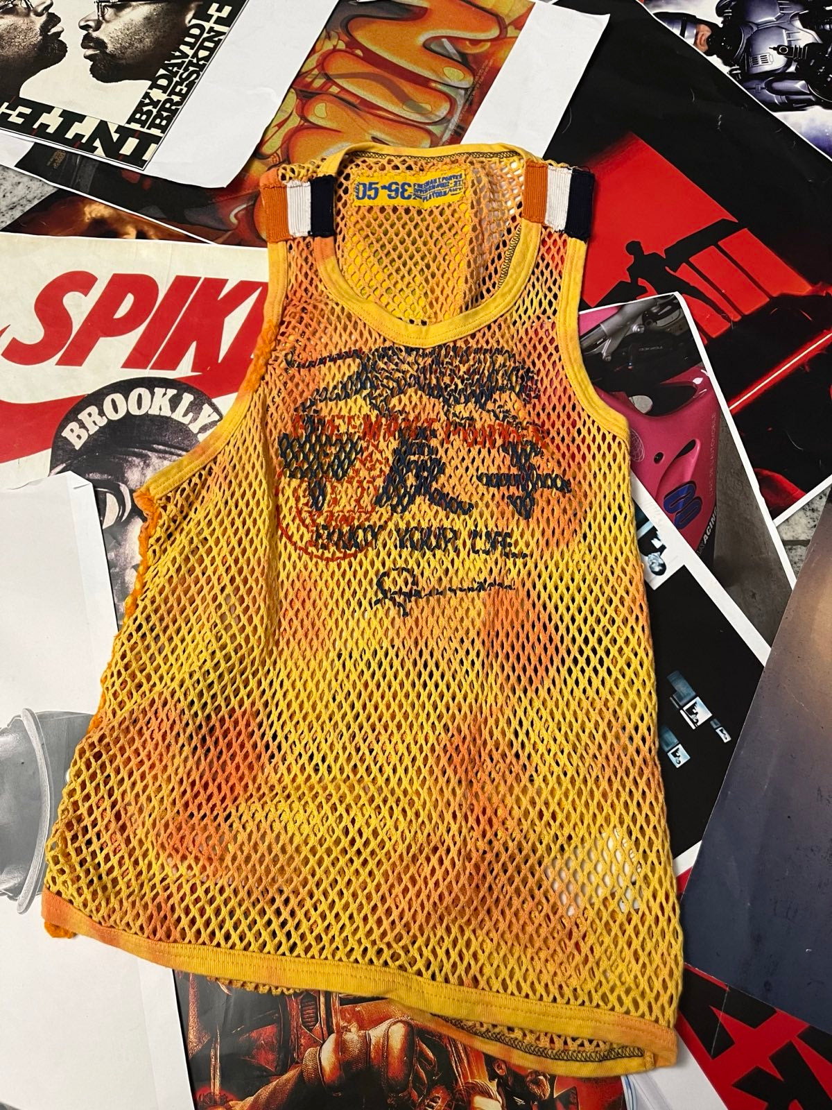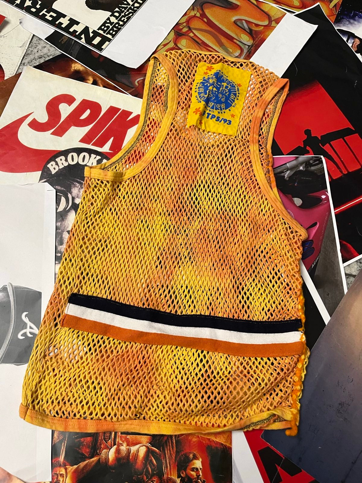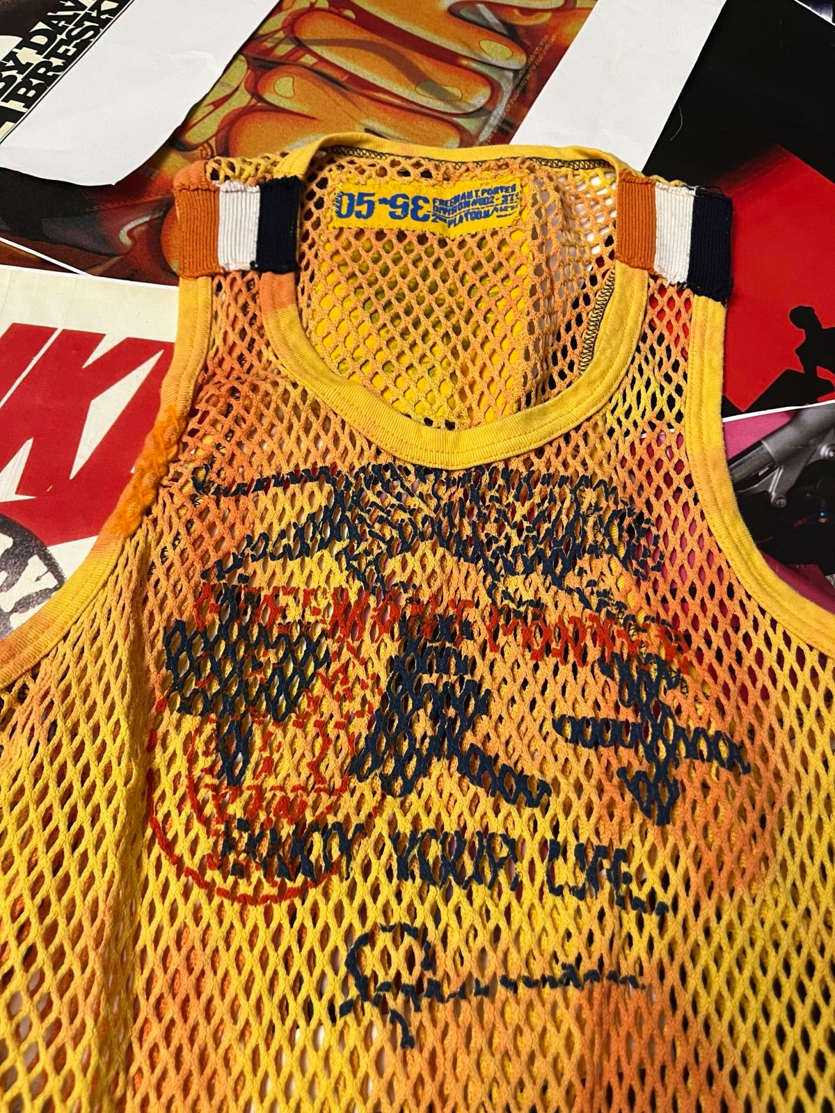 (M) Tílko oranžové síťované s tygrem