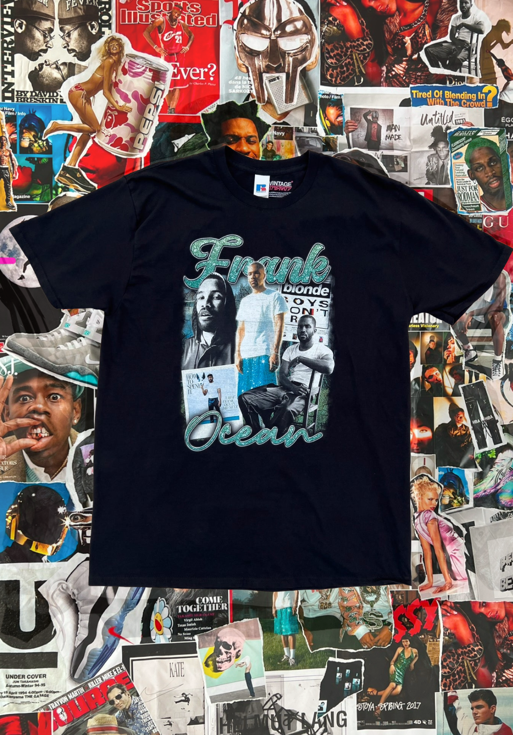 Černé a bílé triko značky Russell s bootlegovým potiskem na přední straně. Gramáž 180 GSM, regular fit. Potisk je formou přímého digitálního tisku (DTG), který si zaobstaráváme sami v naší dílně Vintage therapy.
