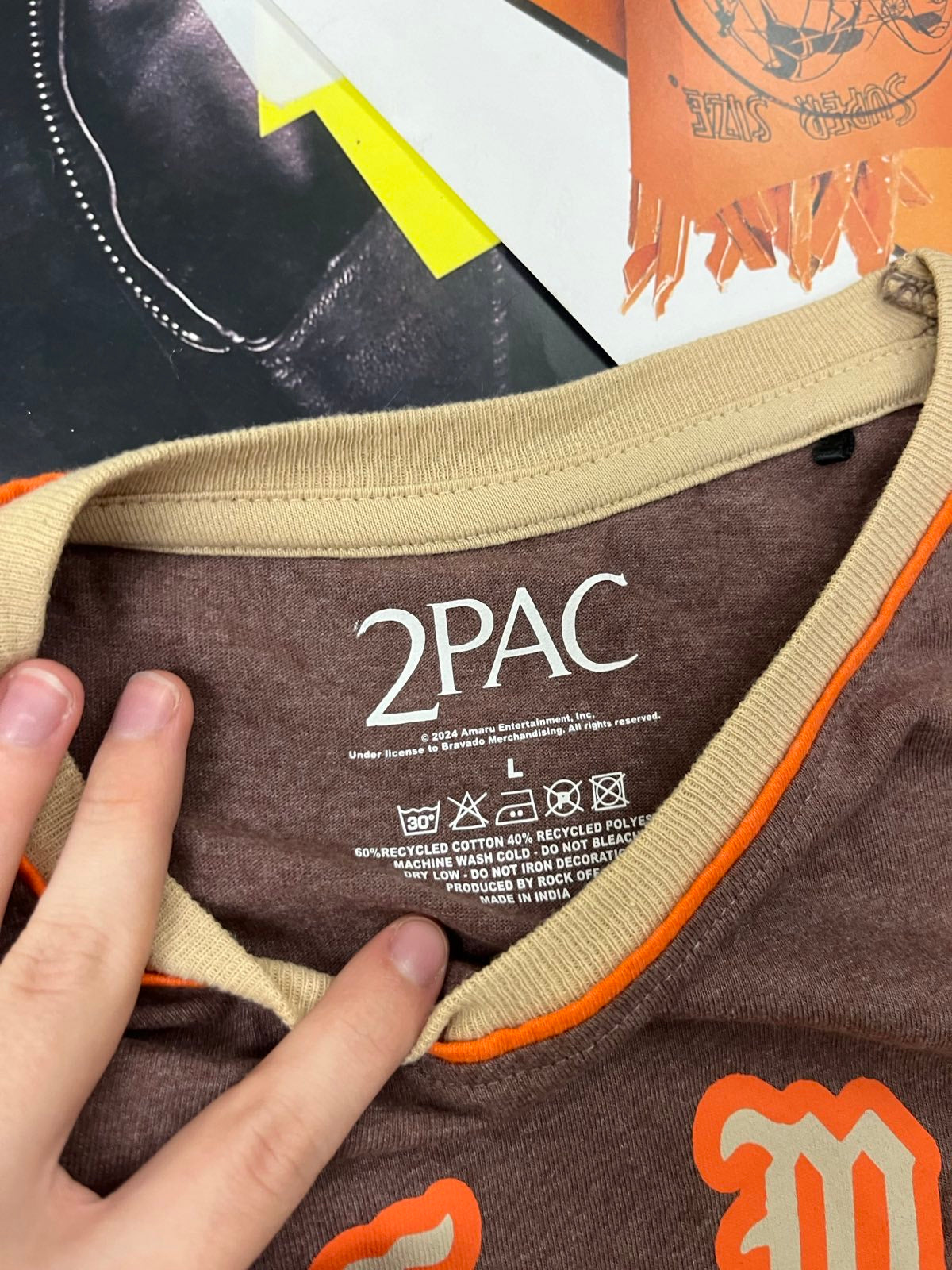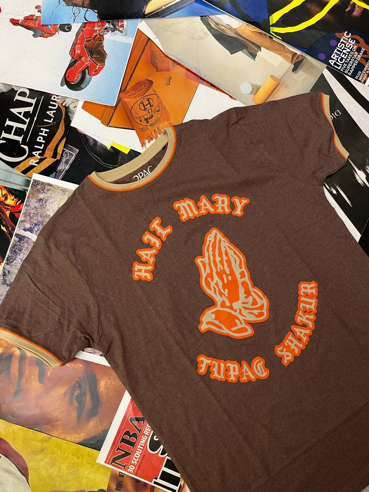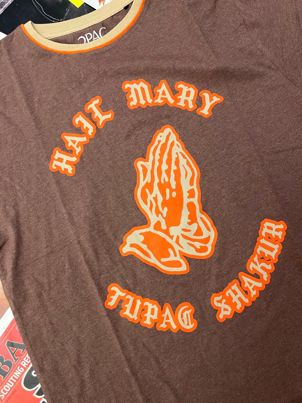 (L) Tupac Shakur TRIKO hnědé s oranžovým nápisem Hail Mary Tupac Shakur