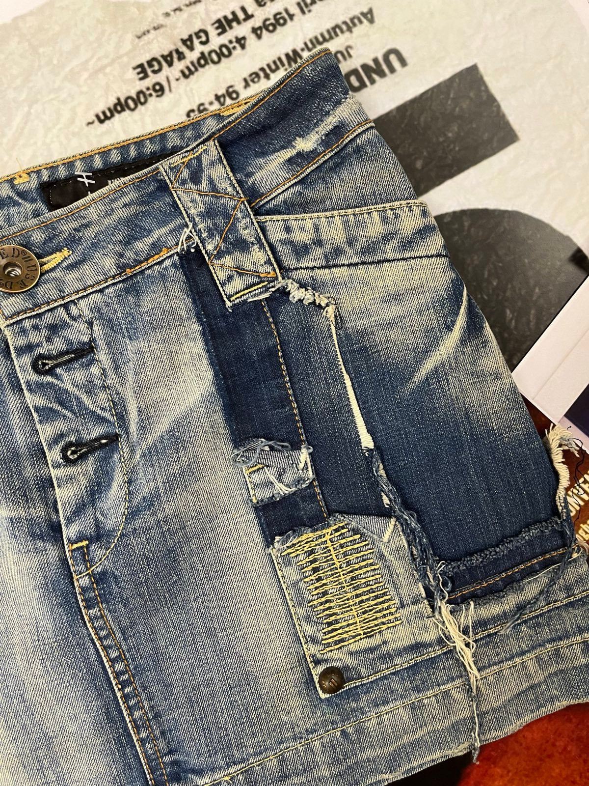 (S) Used Jeans SUKNĚ džínová distressed modrá