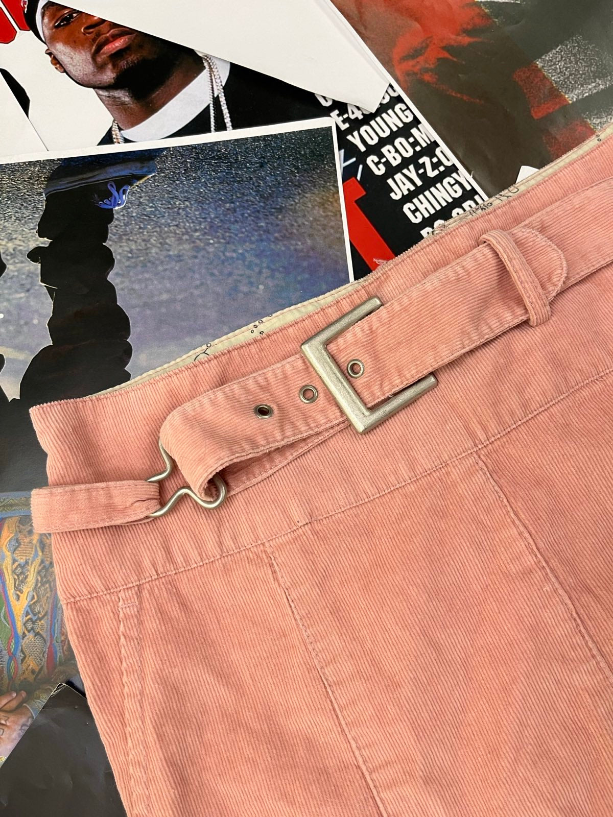 (S) Vero Moda SUKNĚ manšestrová světle růžová s páskem
