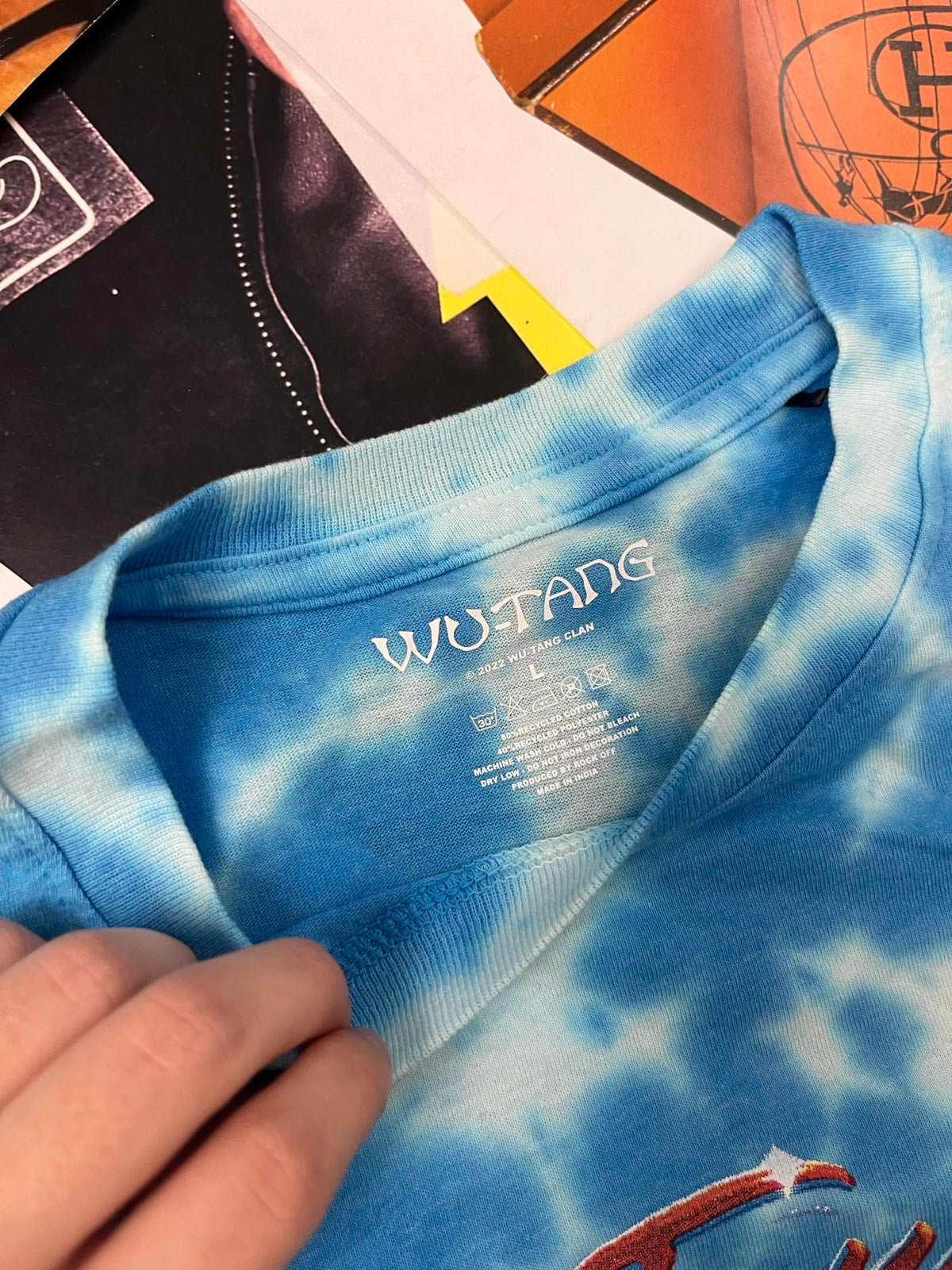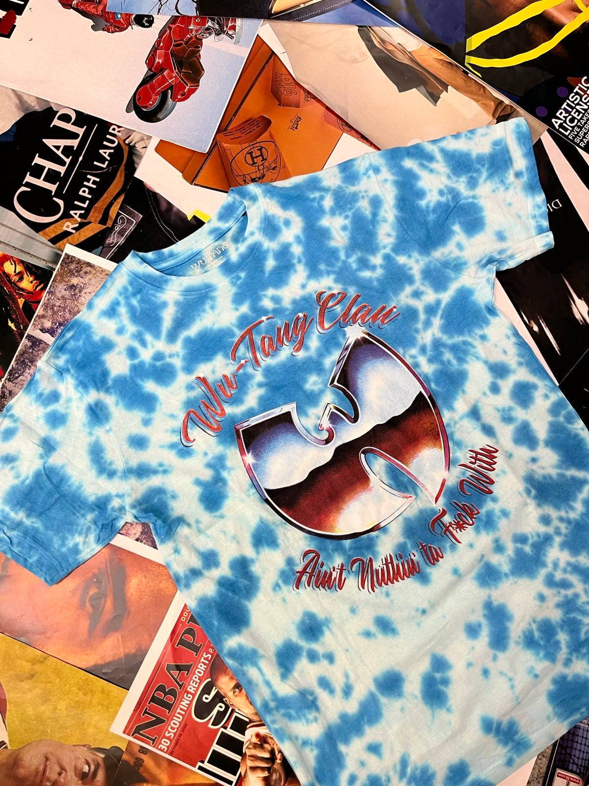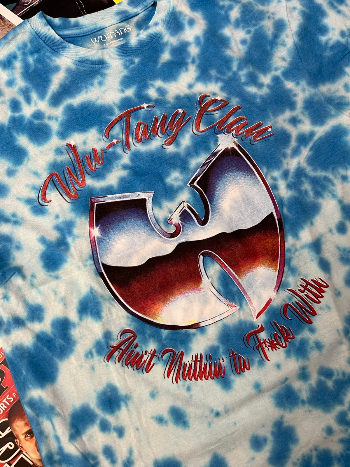 Wu-Tang Clan TRIKO modré batikované, červený potisk a nápis